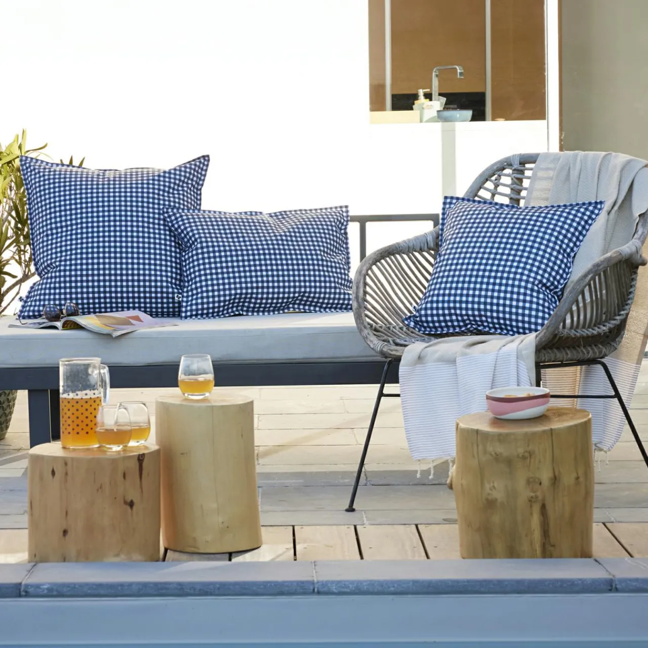 Imprimé : housse de coussin à motif carreaux vichy recto / verso.