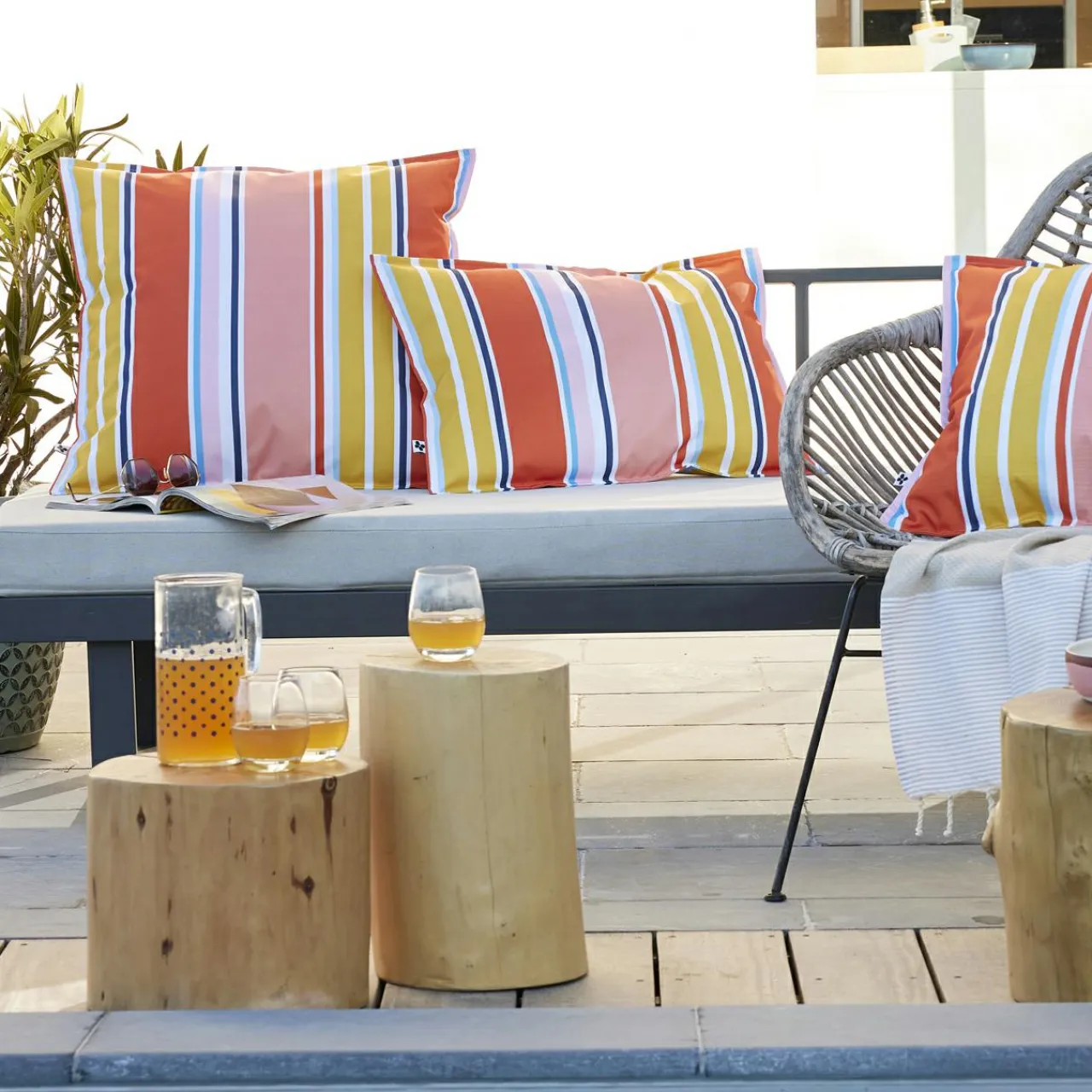 Imprimé : housse de coussin à rayures recto / verso.