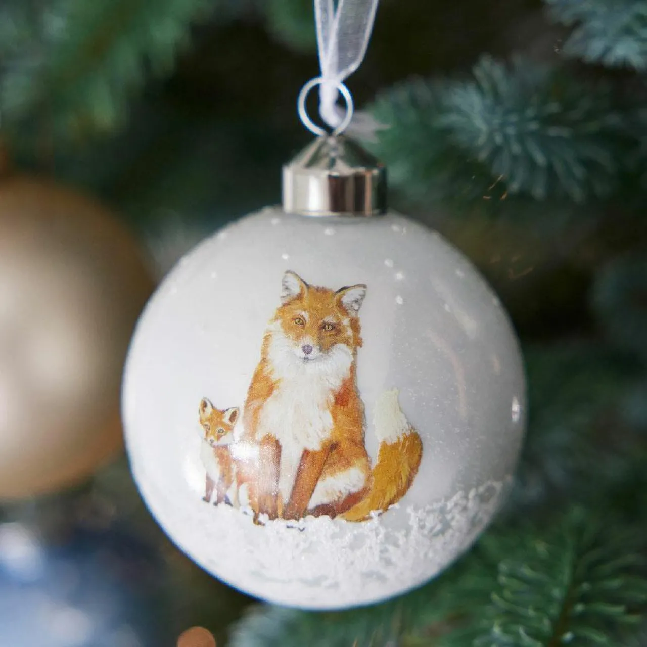 Vendues par 12. Le lot est composé de 2 boules motif biche et faon, 2 boules motif cerf, 2 boules motif rennes, 2 boules motif ours polaire, 2 boules motif renne et oiseaux, 2 boules motif renards.