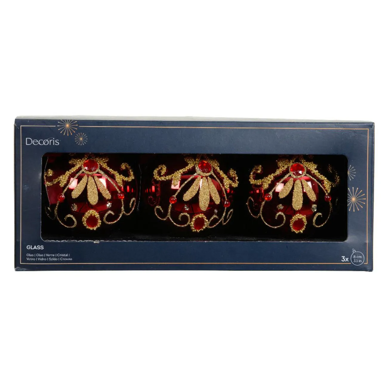 Informations complémentaires : vendu en lot de 3. Les boules sont munies d’une suspension en velours rouge oxblood incluse. Le couvercle est en métal de luxe.