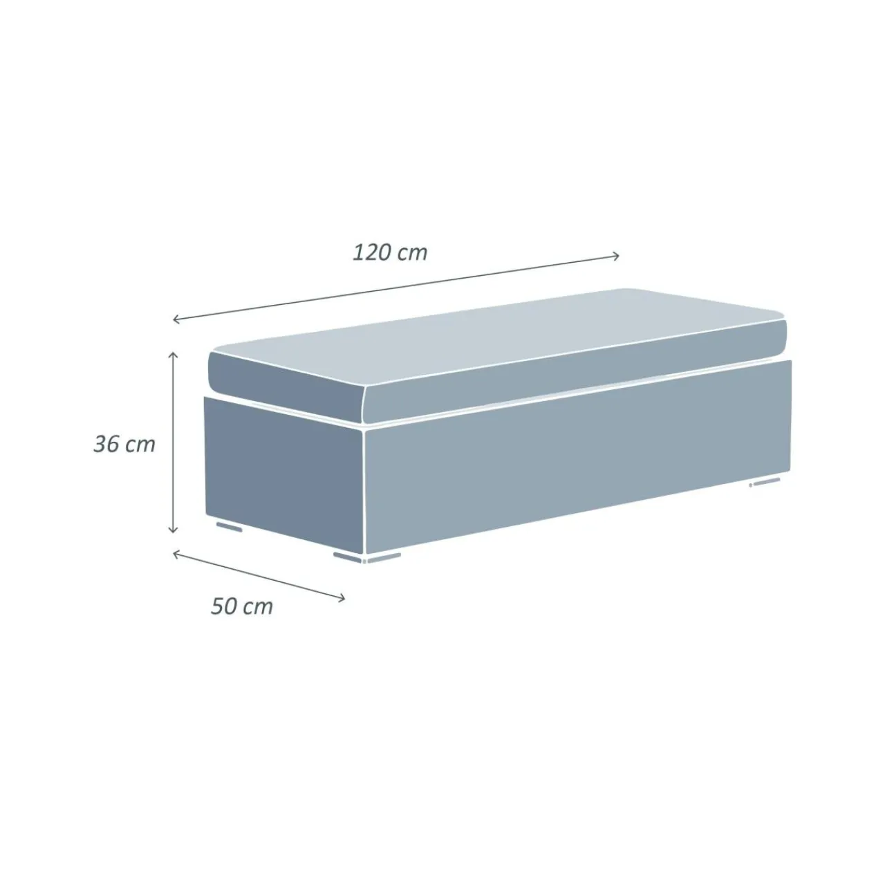 – Coussin : longueur 120 x largeur 50 x épaisseur 10 cm.