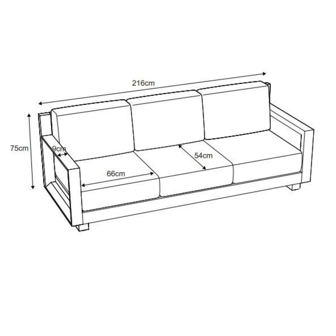 – Coussin d’assise : longueur 64 x profondeur 81 x hauteur 19 cm.
