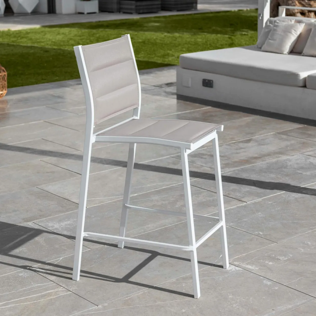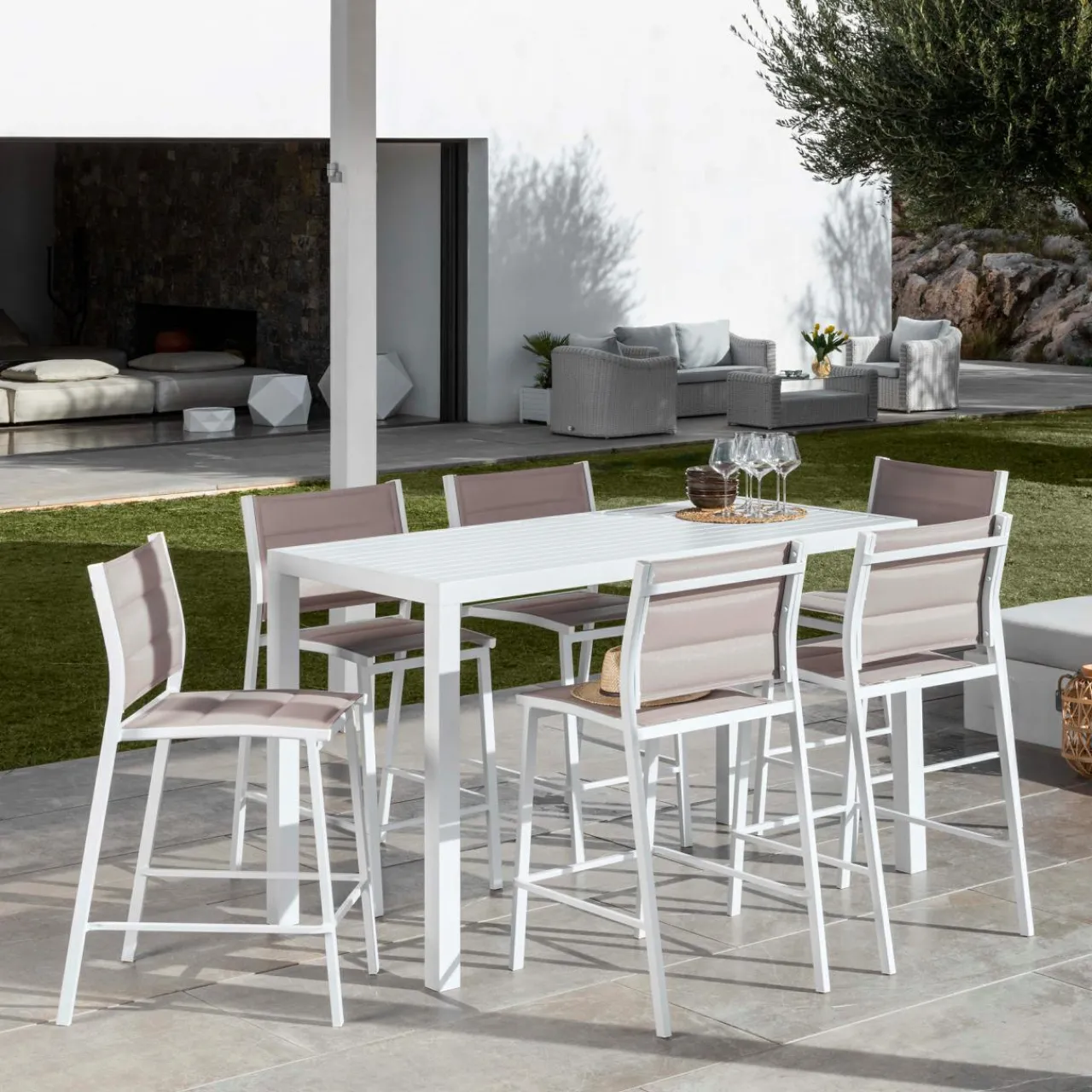 Le tabouret de jardin Murano au design moderne en aluminium est adapté à la table haute de jardin Murano.