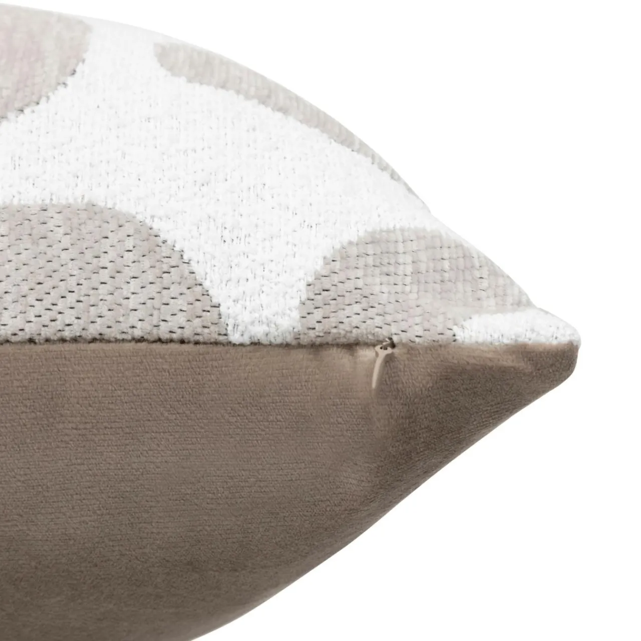 Imprimé : coussin à motif graphique au recto et uni au verso.