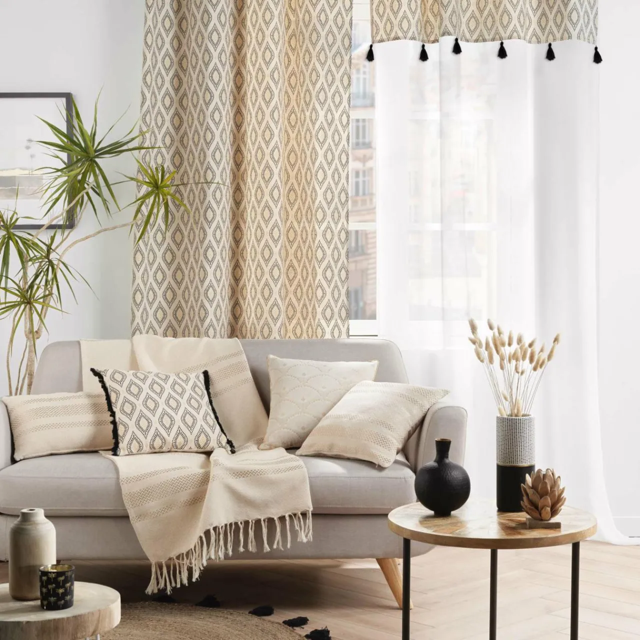 Imprimé : coussin à motif ethnique.