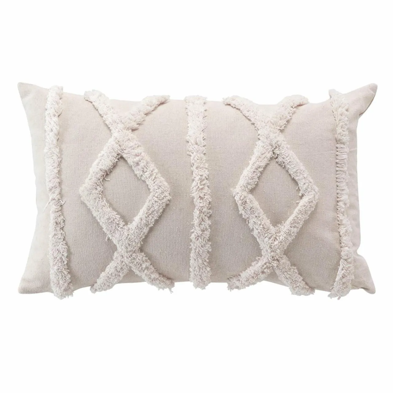 Imprimé : coussin à motif ethnique au recto et uni au verso.