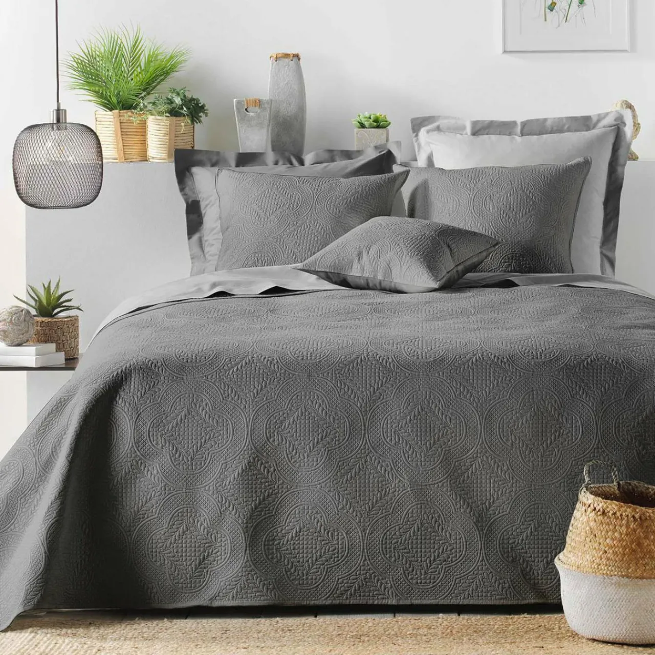 Housse De Couette|TRADILINGE Housse de couette percale de coton (300 x 240 cm) Riviera e Gris