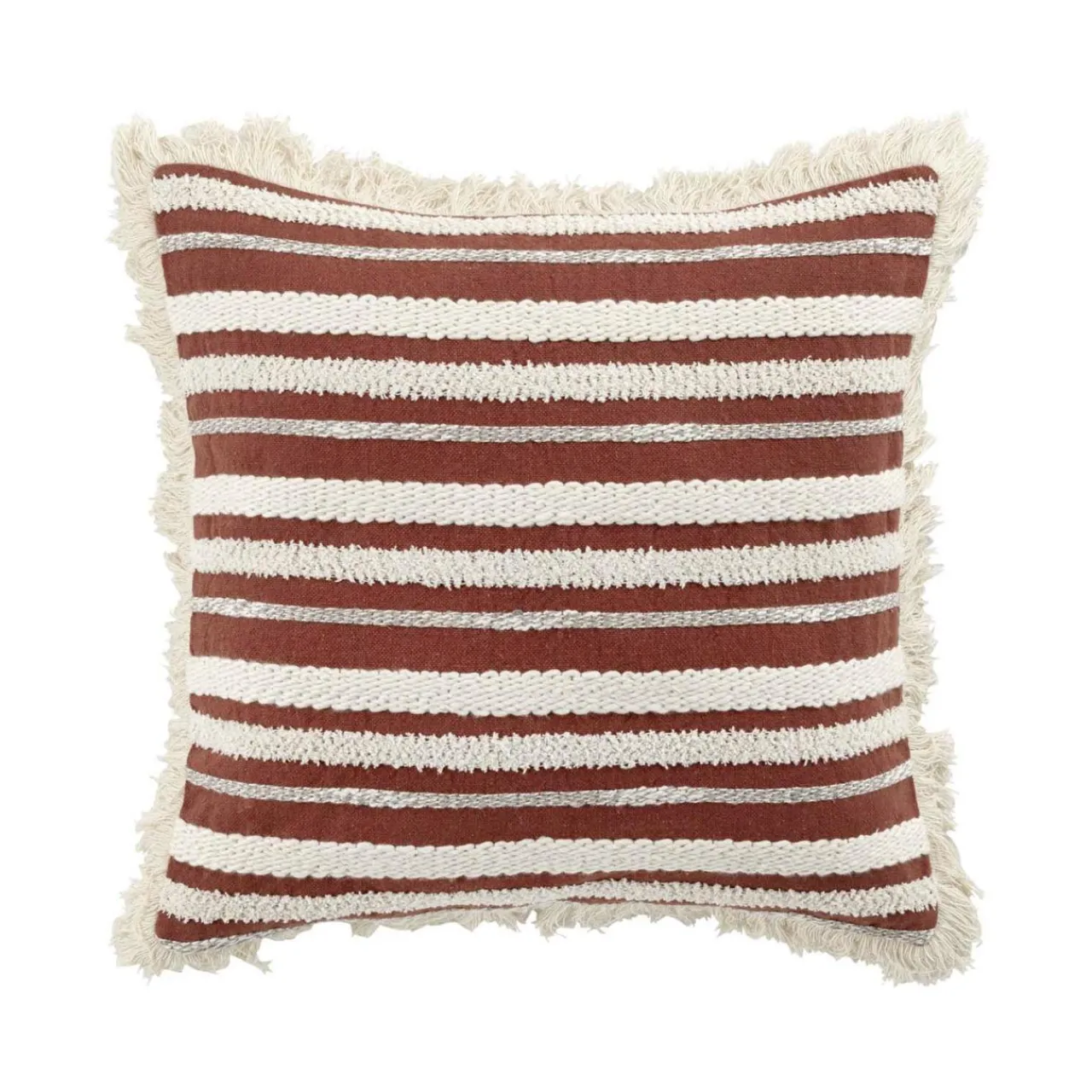 Imprimé : coussin à motif ethnique au recto et uni au verso.