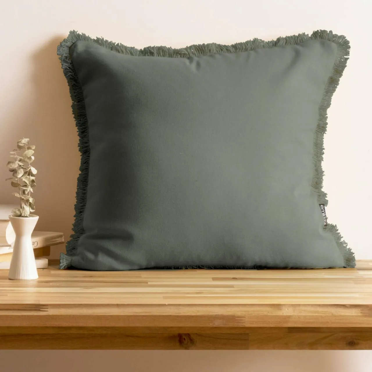 Coussin Et Housse|EMINZA Coussin carré coton (45 x 45 cm) Pixel franges Vert kaki