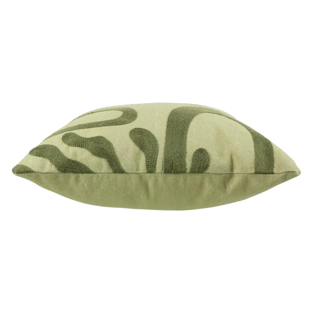 Imprimé : coussin à motif végétal au recto et uni au verso.