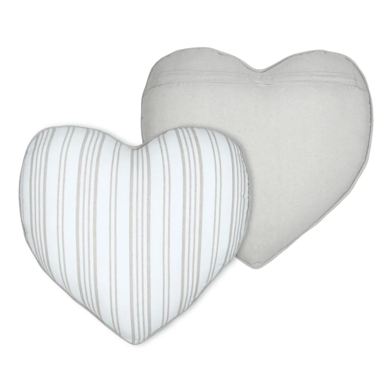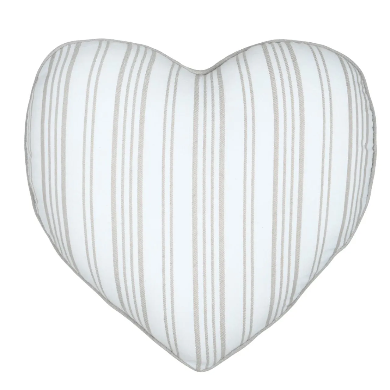 Ce coussin en forme de cœur, issu de la gamme Joséphine, apporte une touche romantique et tendre à votre décoration. Son motif épuré en rayures sur le recto et uni au verso, associé à sa couleur écrue, s’intègre parfaitement dans un univers de maison de campagne.