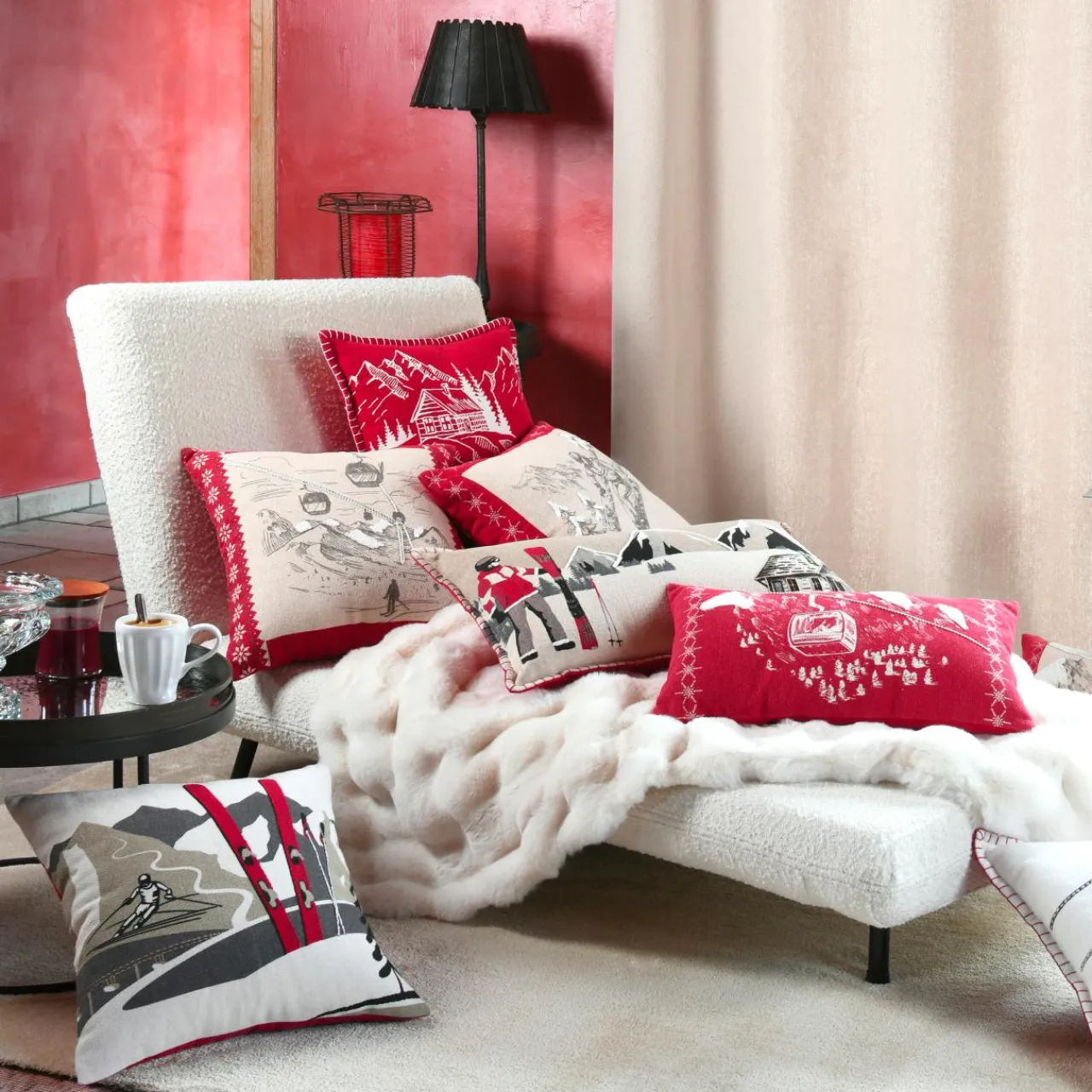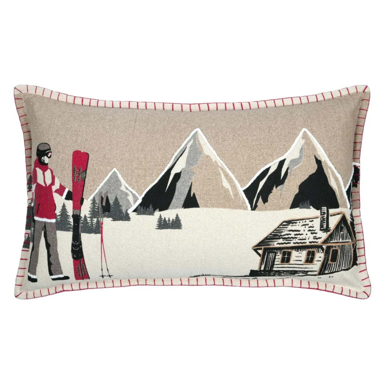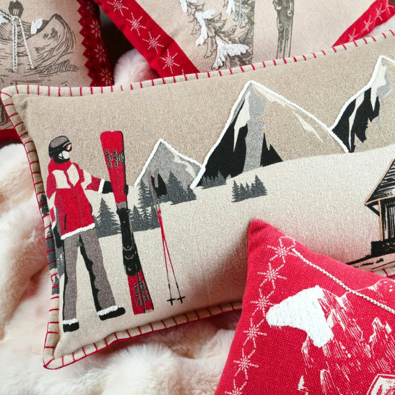 Imprimé : motif station de ski au recto et uni au verso.