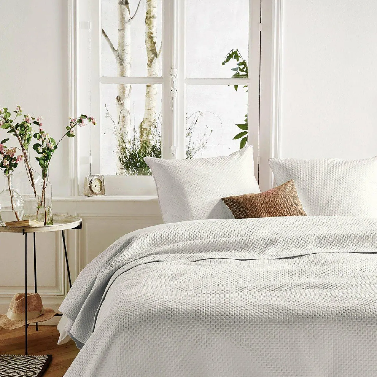 Finition : couvre-lit motif recto / verso, taies à fermeture nouettes.