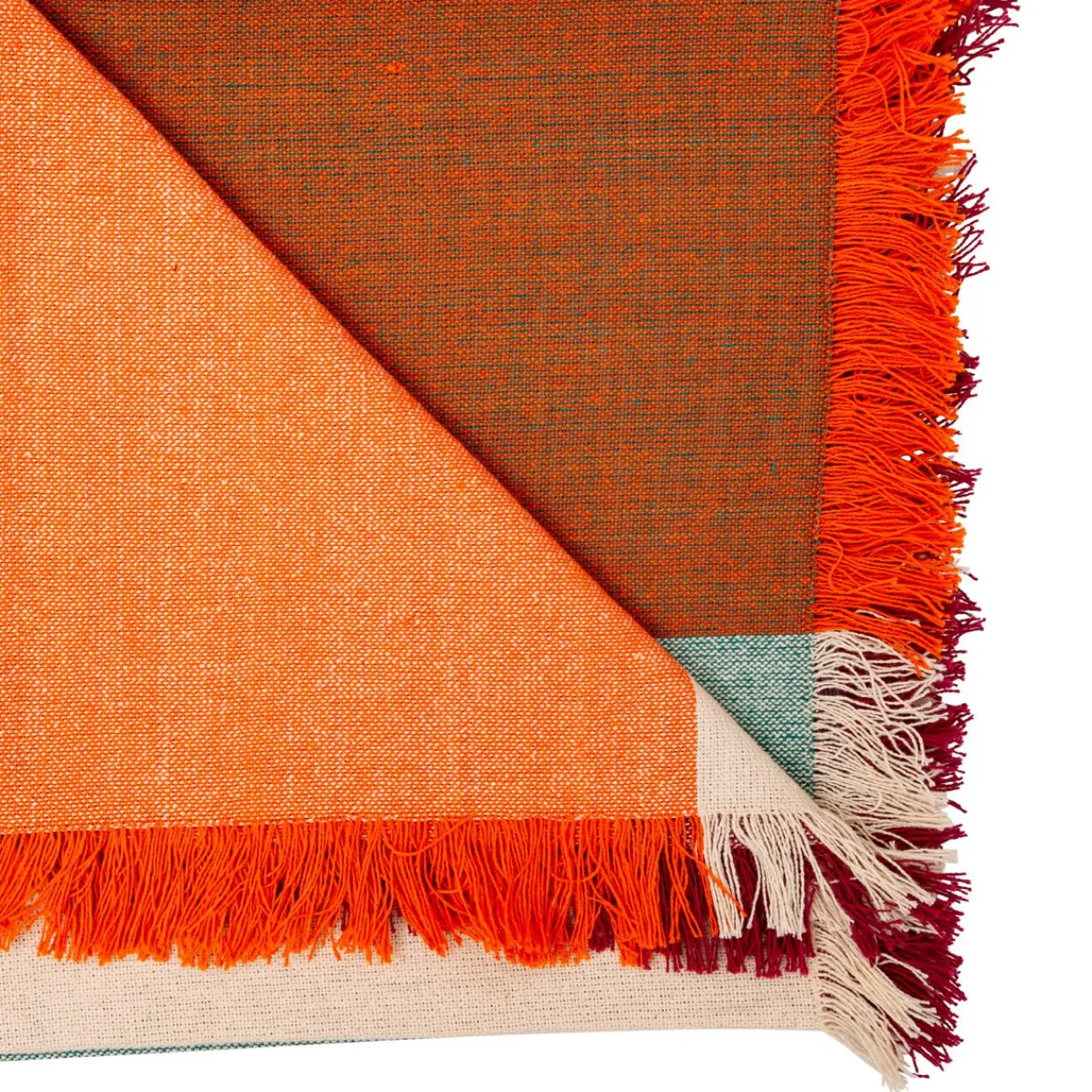 Imprimé : jeté de lit à carreaux et franges.