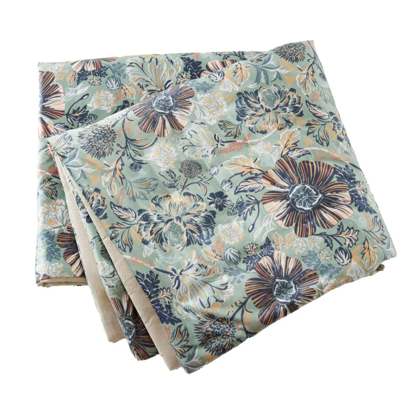 Matière : face avant 100% polyester velours (220 gr/m²), face arrière 100 % coton chambray (185 gr/m²). Garnissage : 100% polyester.
