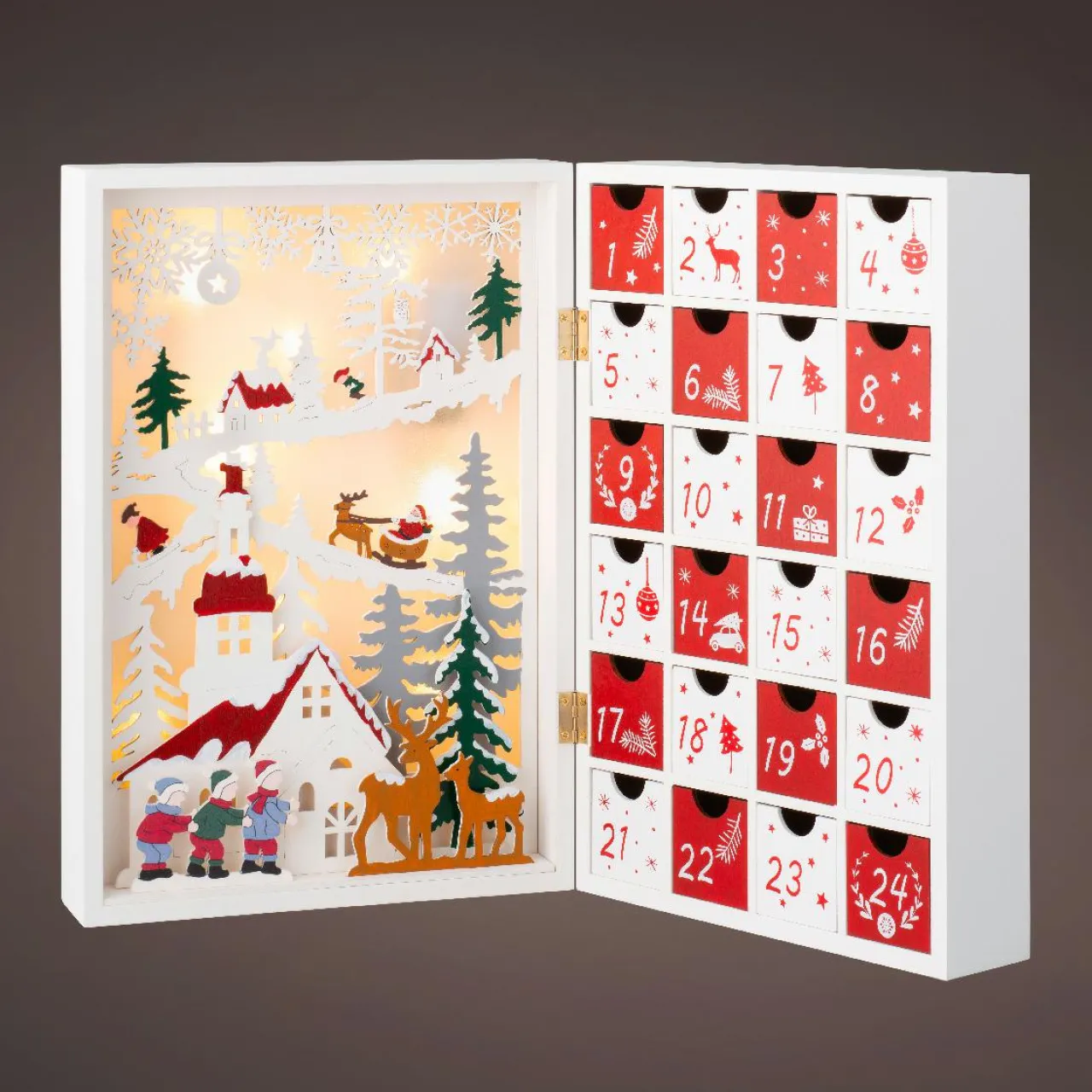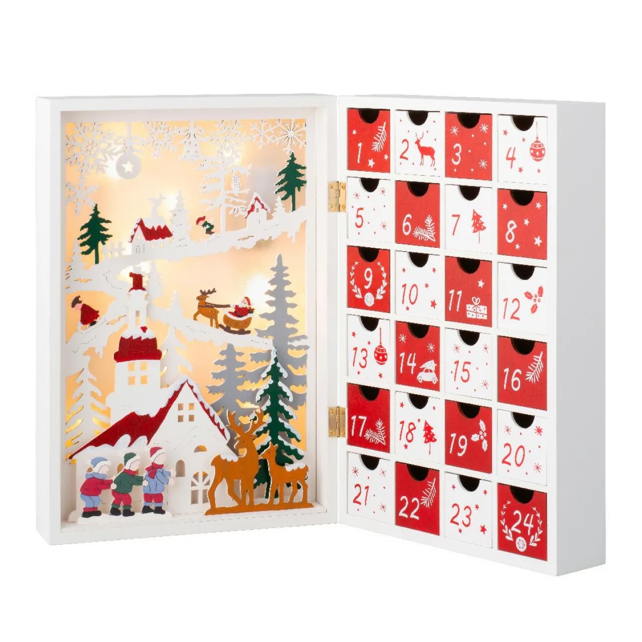 Chaque jour dévoile une nouvelle surprise dans les petites cases, tandis que les lumières délicates illuminent ce charmant village enneigé. Parfait pour ajouter une touche de magie à votre intérieur, ce calendrier rendra l’attente des fêtes encore plus spéciale et mémorable pour petits et grands.