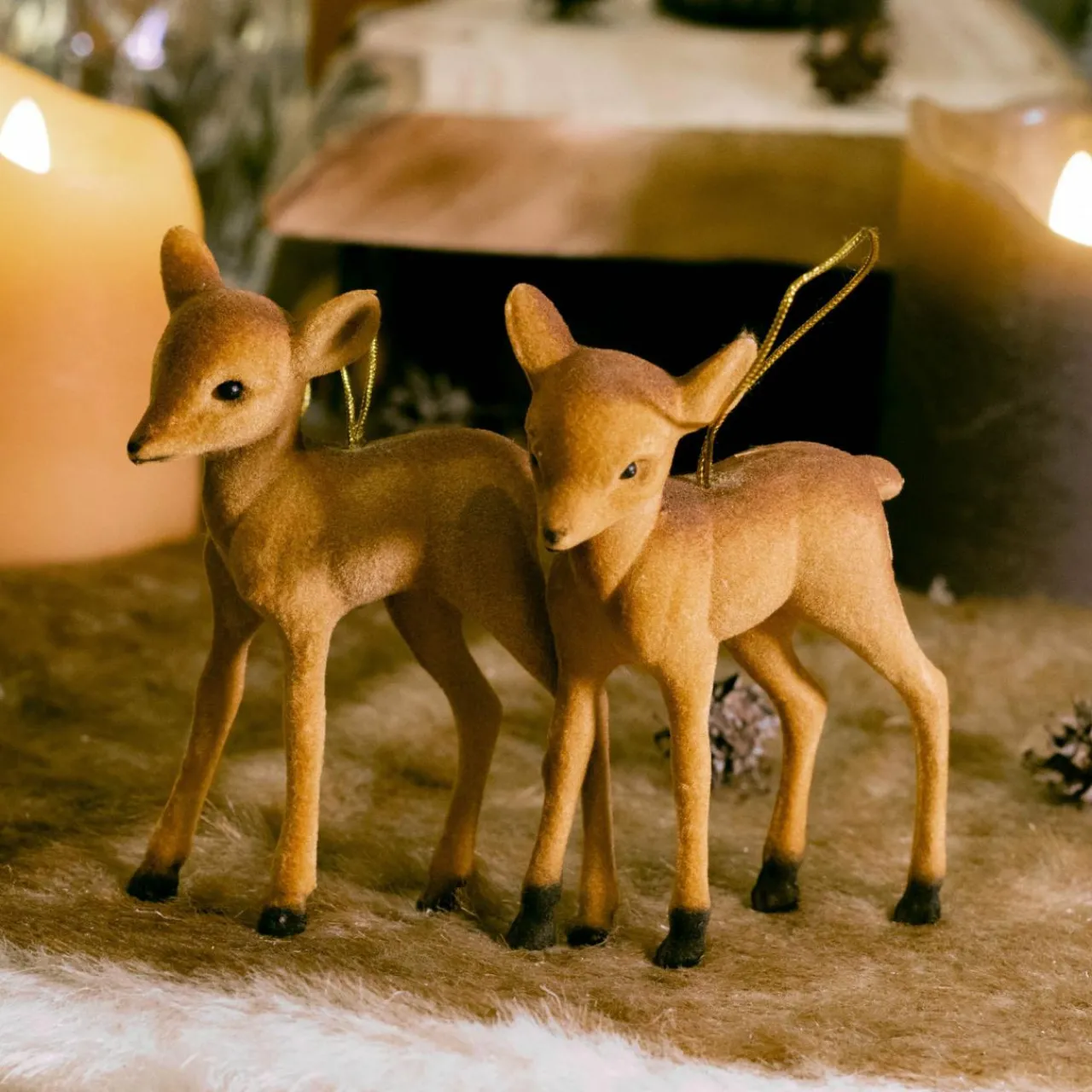 Tout en douceur, les faons viennentt trouver refuge sur les branches de votre sapin pour mettre les habitants de la forêt à l’honneur dans votre déco.