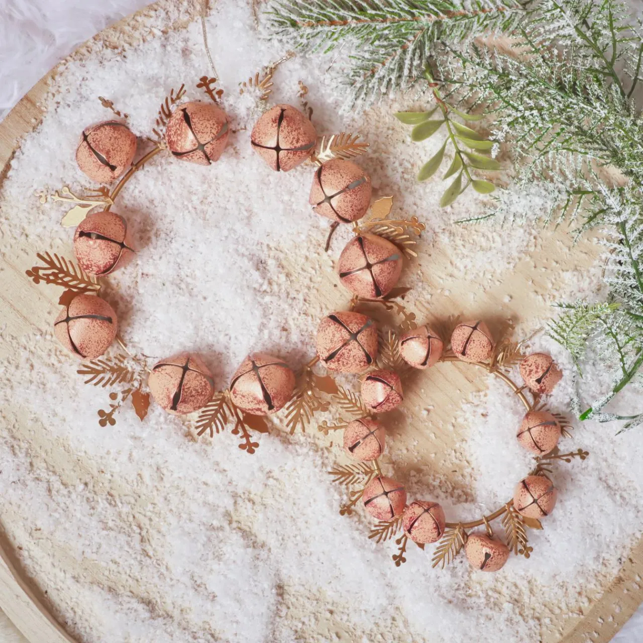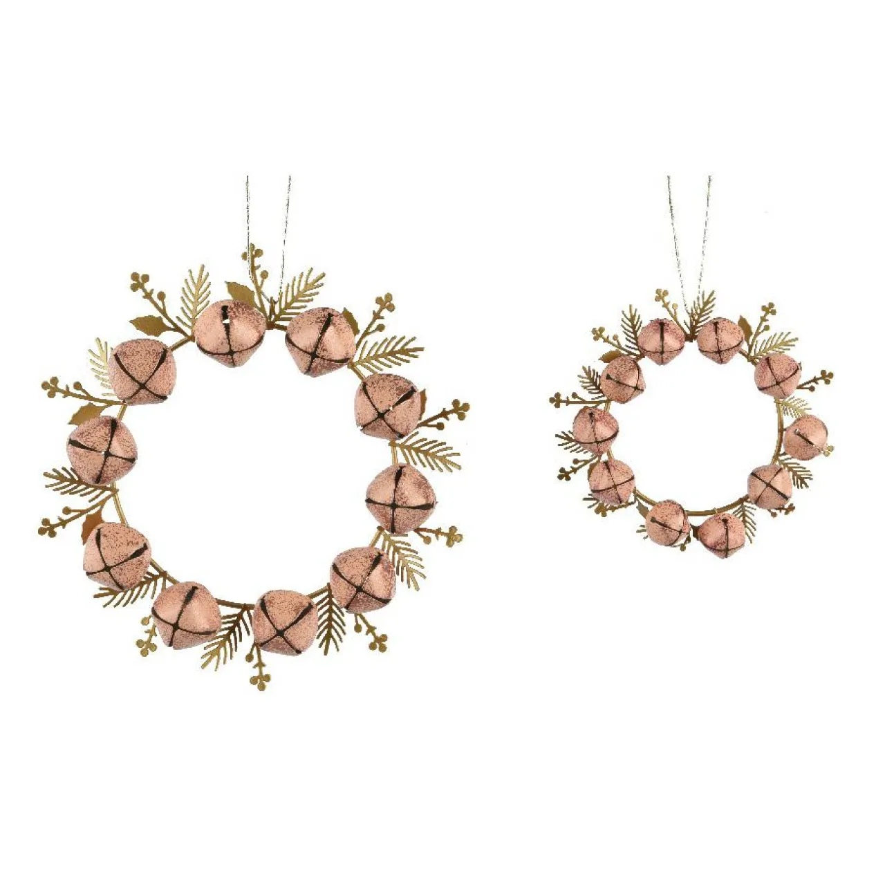 Décoration De Sapin|KAEMINGK Lot de 2 suspensions en métal (D19 cm) Couronne de clochettes et or Rose