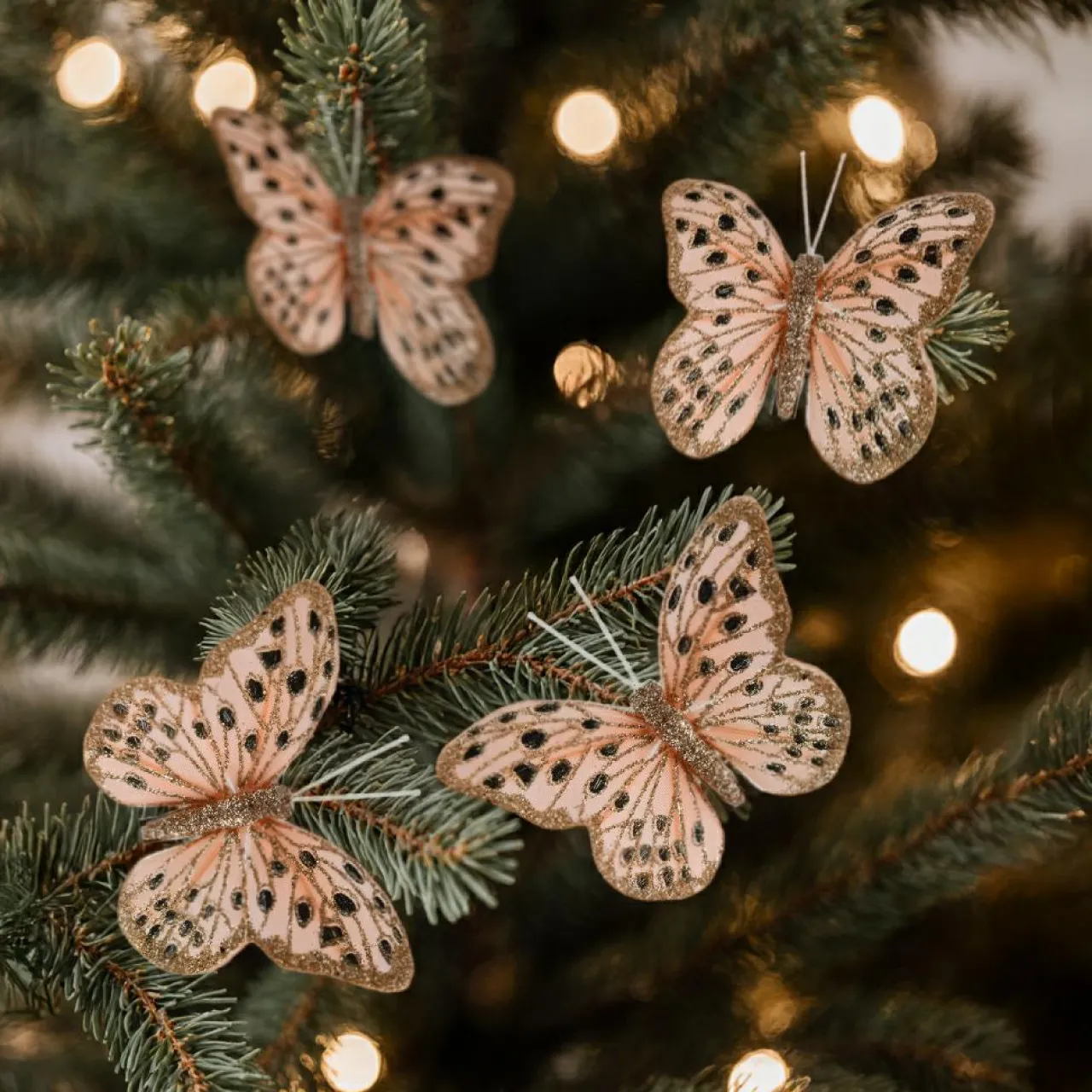 Ces quatre papillons sur pince, d’une hauteur de 6 cm, apporteront une touche de magie et de féérie à votre décoration de Noël. Leur couleur rose poudré pailletée et leur matière en plume synthétique leur confèrent un charme délicat et raffiné. Ils se fixent facilement sur les branches de votre sapin, créant un univers féerique et enchanteur. Parfait pour une ambiance douce et chaleureuse lors des fêtes de fin d’année.