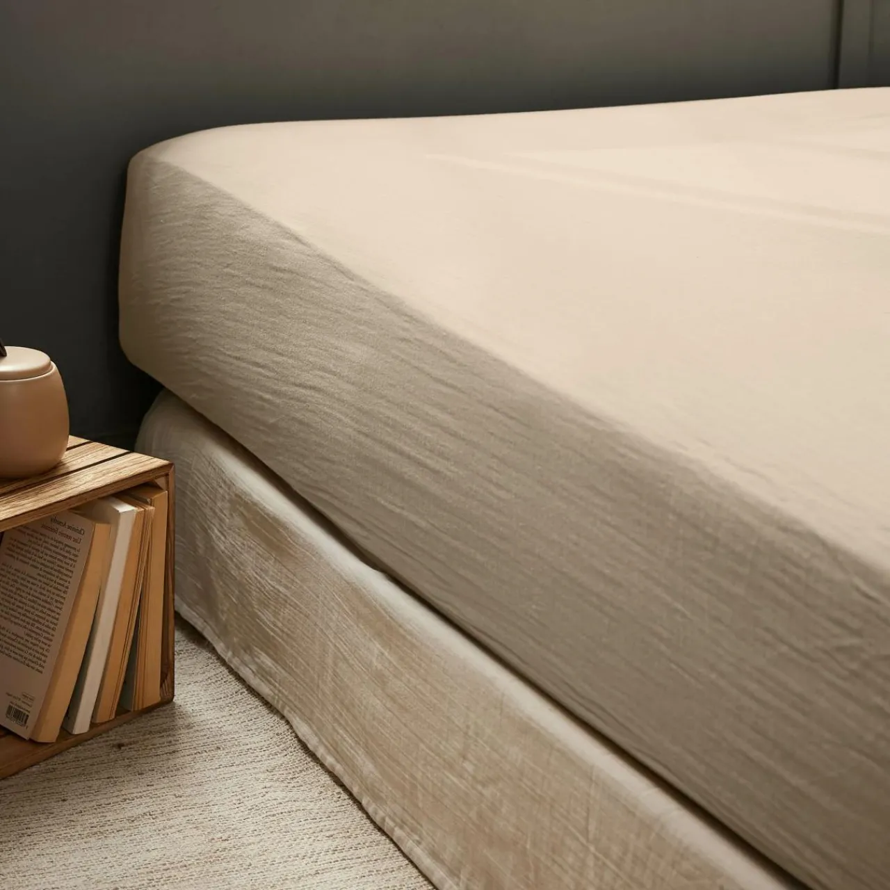 Drap Housse|EMINZA Drap housse gaze de coton (160 x 200 cm) Gaïa Ficelle