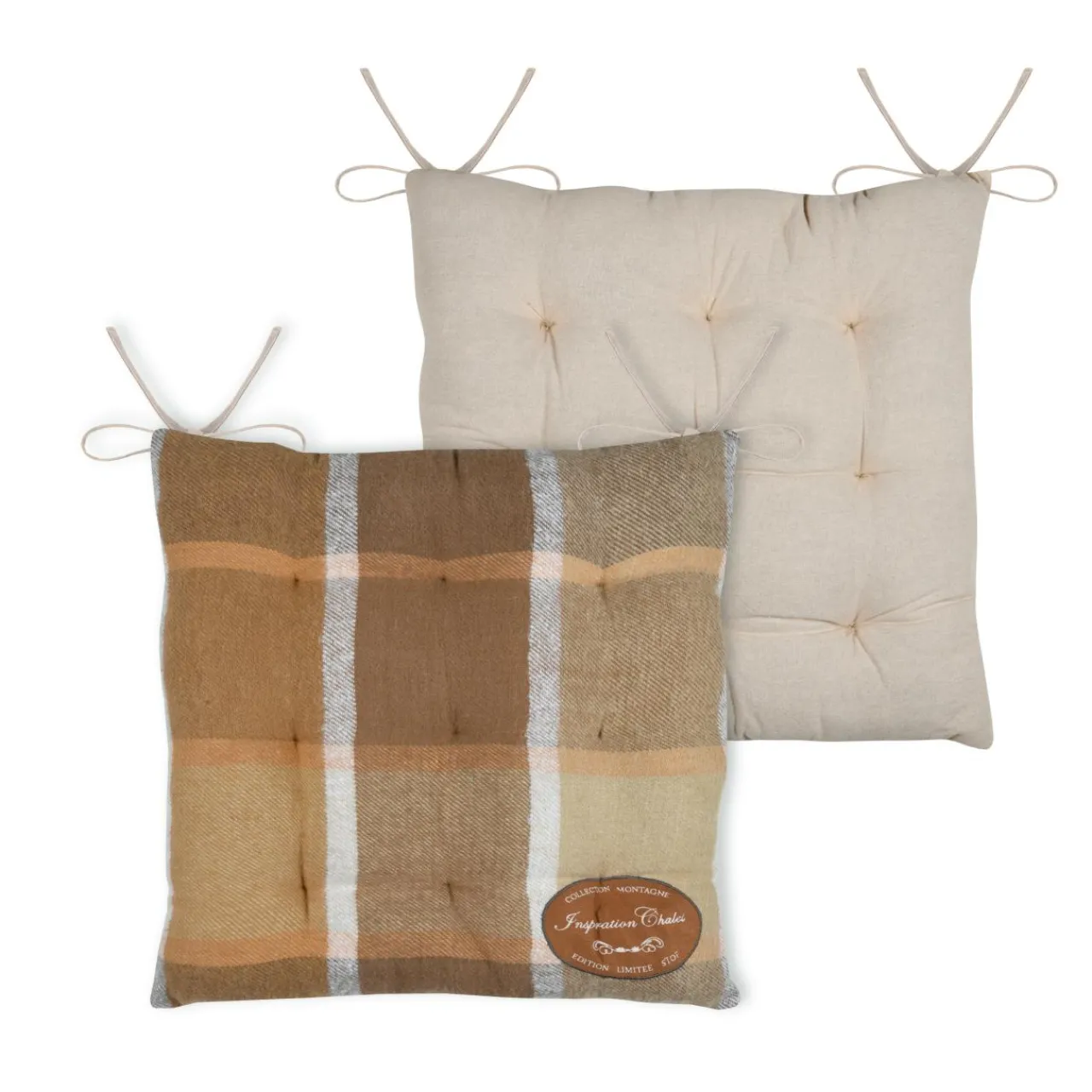 Imprimé : coussin à motif de rayures au recto et uni au verso.