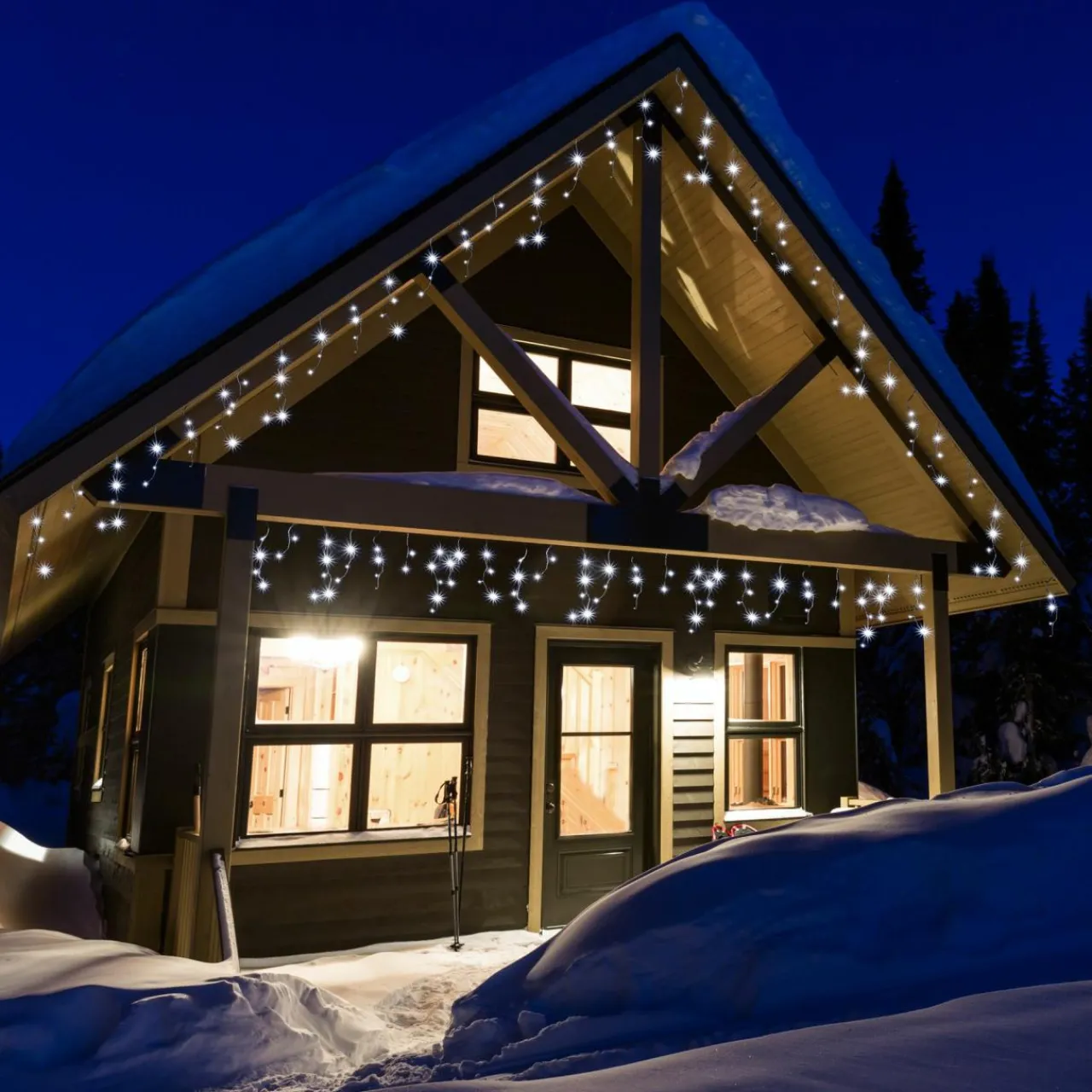 Le produit recherché pour la décoration lumineuse extérieure est la guirlande stalactite. Avec ses différentes hauteurs de descentes, elle offre une décoration proche des glaçons que l’on retrouve tout au long de l’hiver.