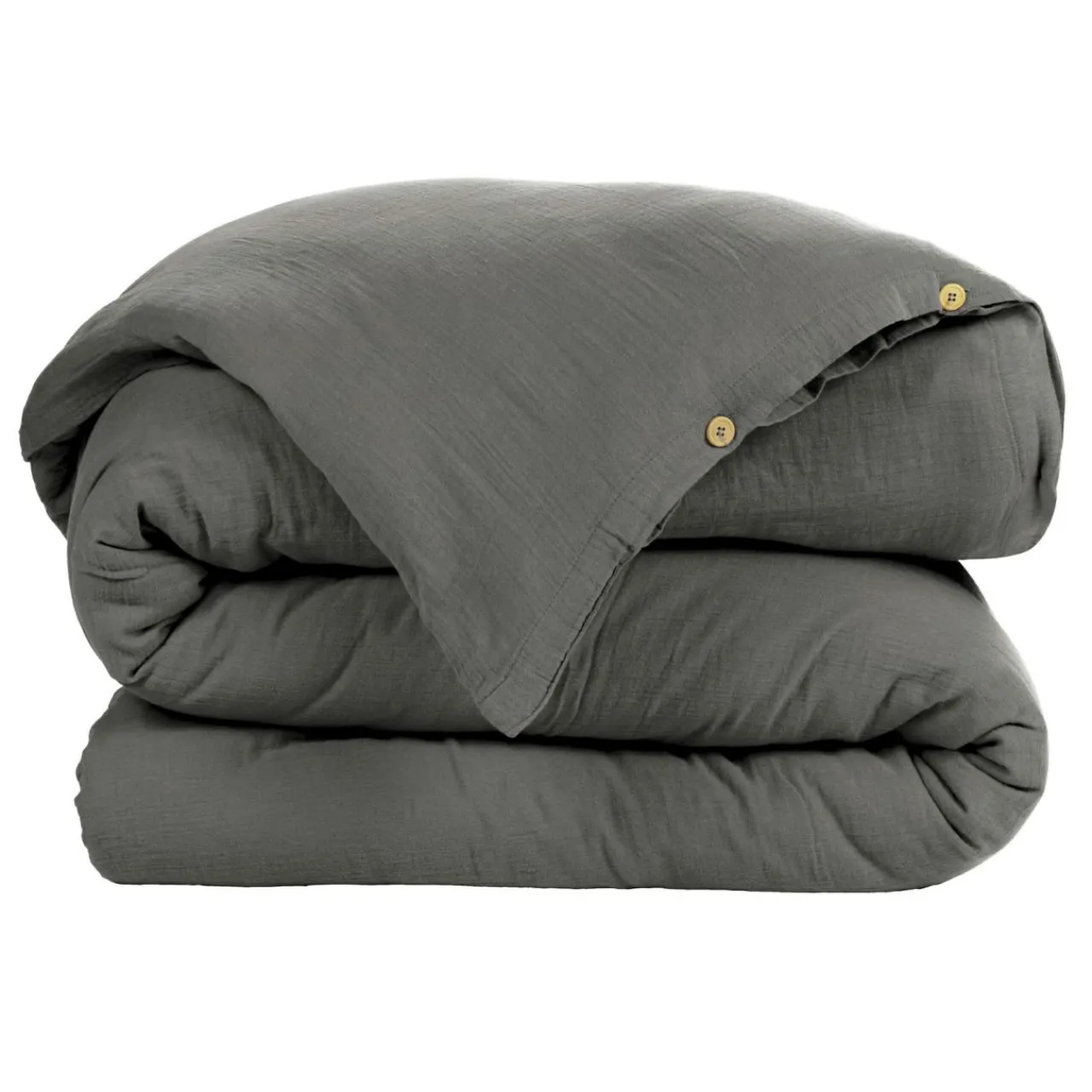 Housse De Couette|EMINZA Housse de couette gaze de coton (200 x 200 cm) Gaïa Gris granit Gris foncé