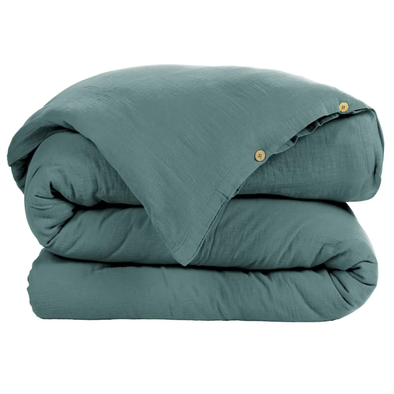 Housse De Couette|EMINZA Housse de couette gaze de coton (240 x 220 cm) Gaïa Bleu canard