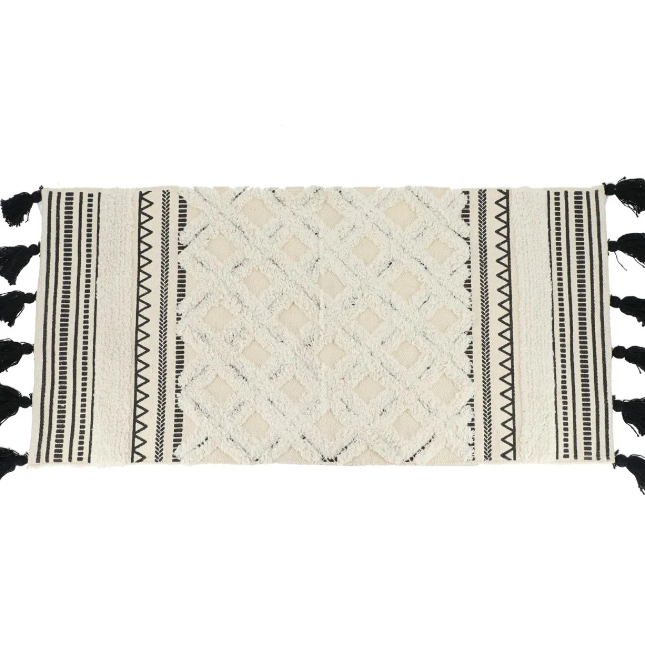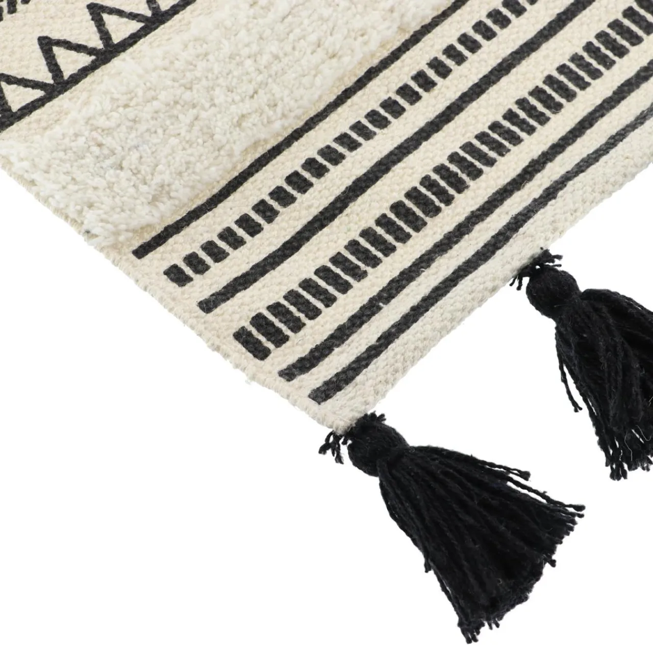 Imprimé : tapis à motif ethnique tufté et à pompons.