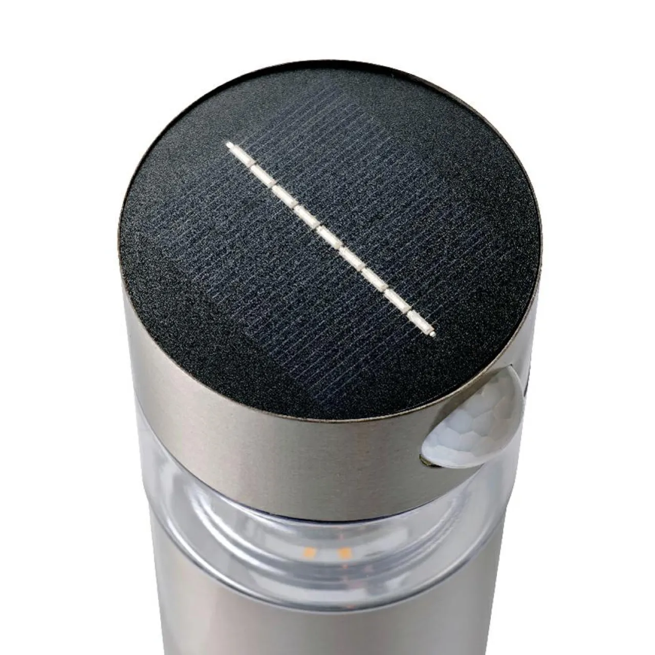 Mode de fonctionnement : cette borne fonctionne à l’énergie solaire avec mode d’éclairage fixe. Luminosité active de 8 heures en saison printemps – été – automne / 4 heures en hiver. Possède un intterupteur ON/OFF. Possède un détecteur de mouvement. Batterie remplaçable. Panneau solaire monocristallin – Voltage du panneau : 4,5 V. Batterie LiFeCoPO4 – Voltage de la batterie 3,2 V. Possibilité de fixer la borne au sol avec piquet ou socle.