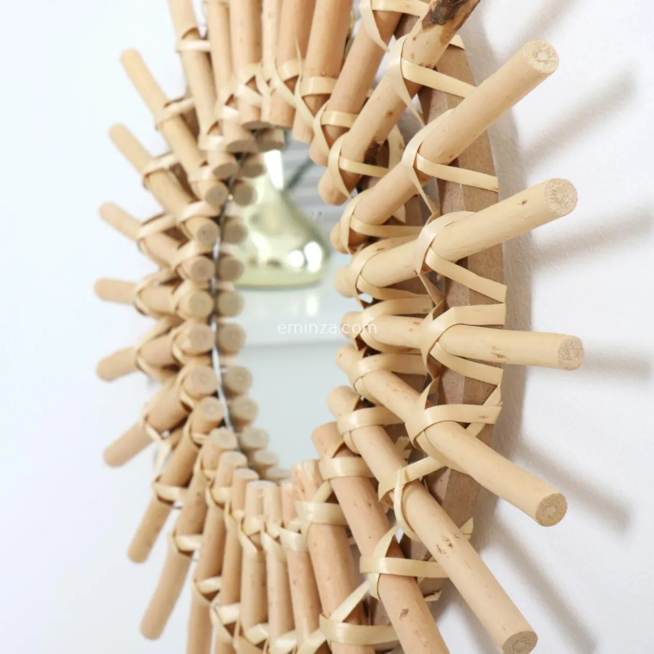 Miroir avec rayons : diamètre 30 x épaisseur 2,2 cm.