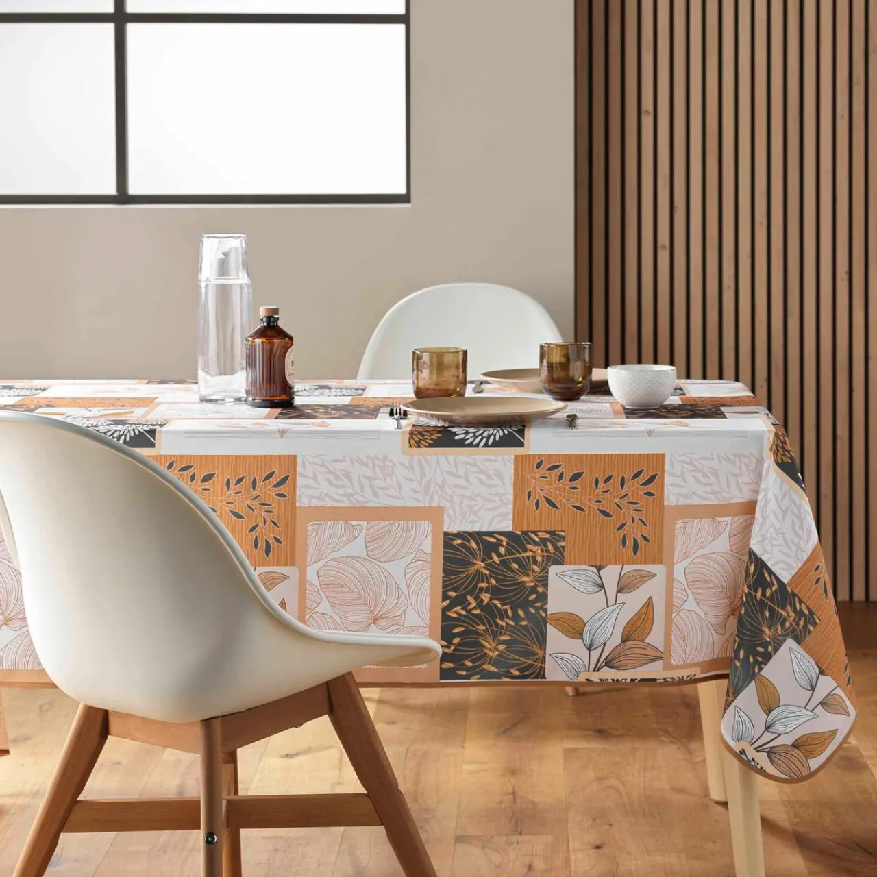Imprimé : nappe à motif végétal.