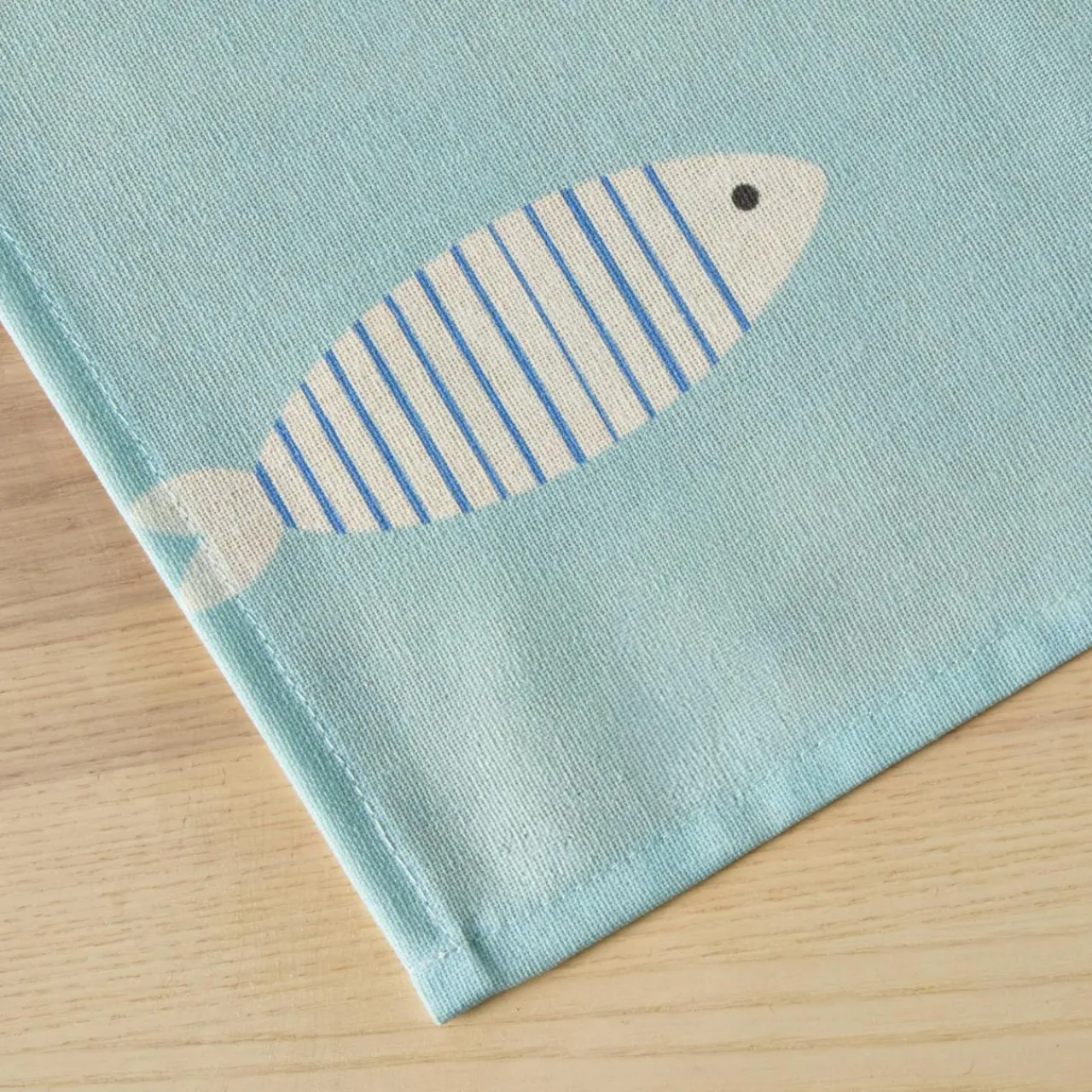 Nappe De Table|EMINZA Nappe rectangulaire coton enduit (150 x 250 cm) Fish e Bleu