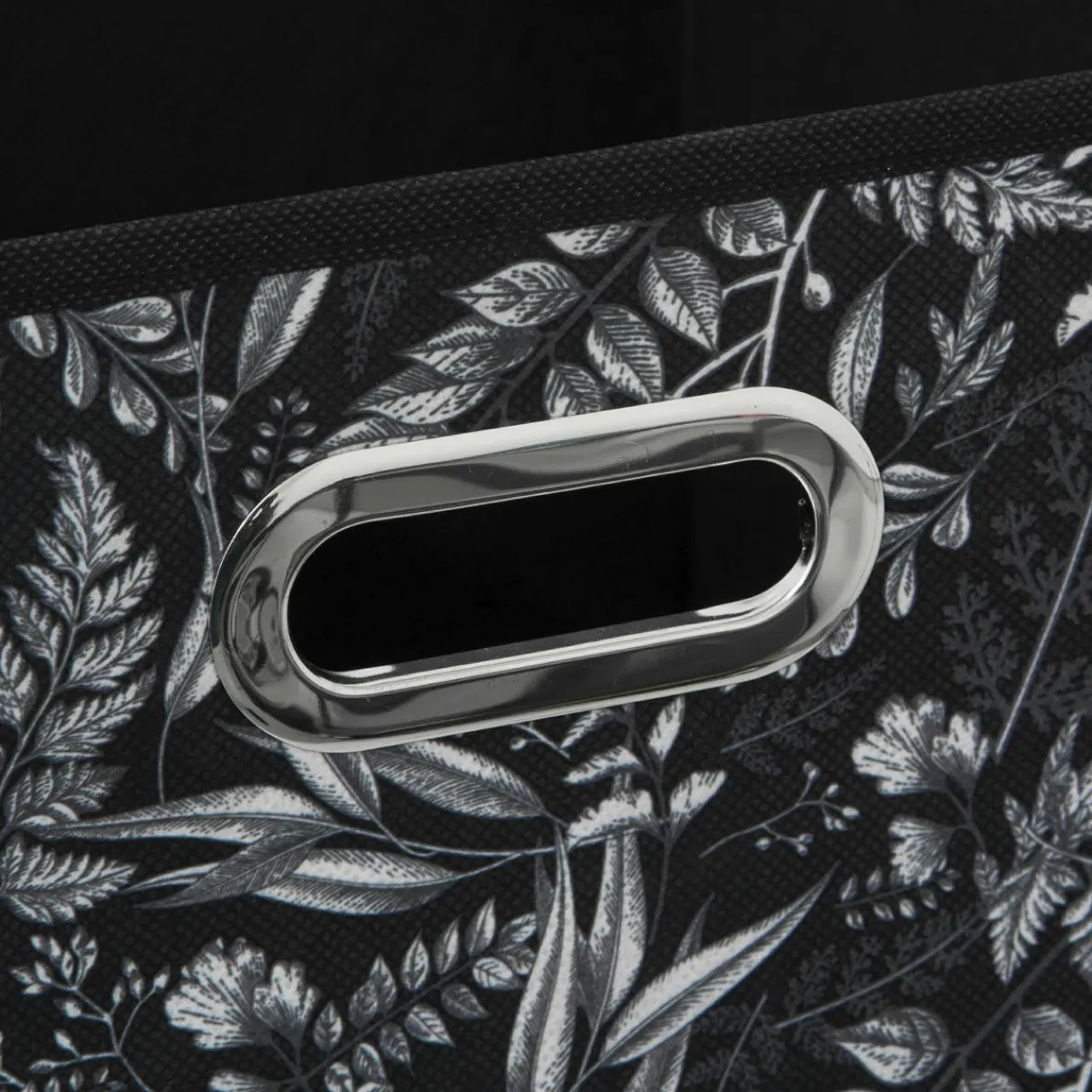 Imprimé : panier à motif végétal et à poignée.