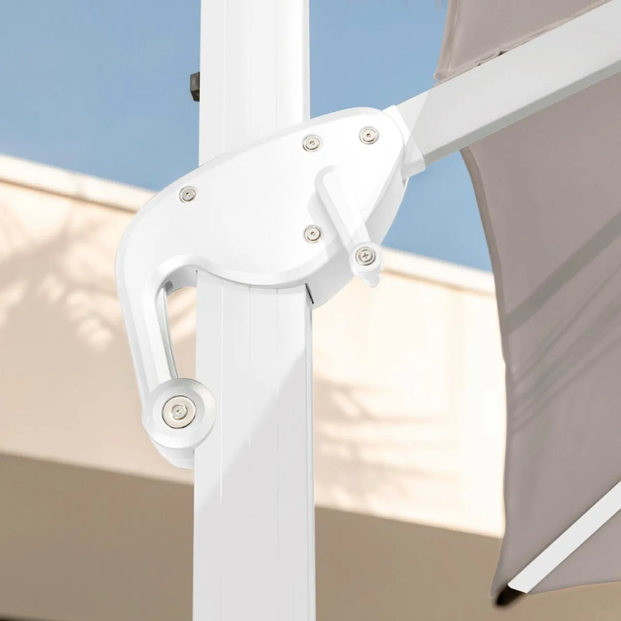 Couleur : toile taupe et structure blanche.