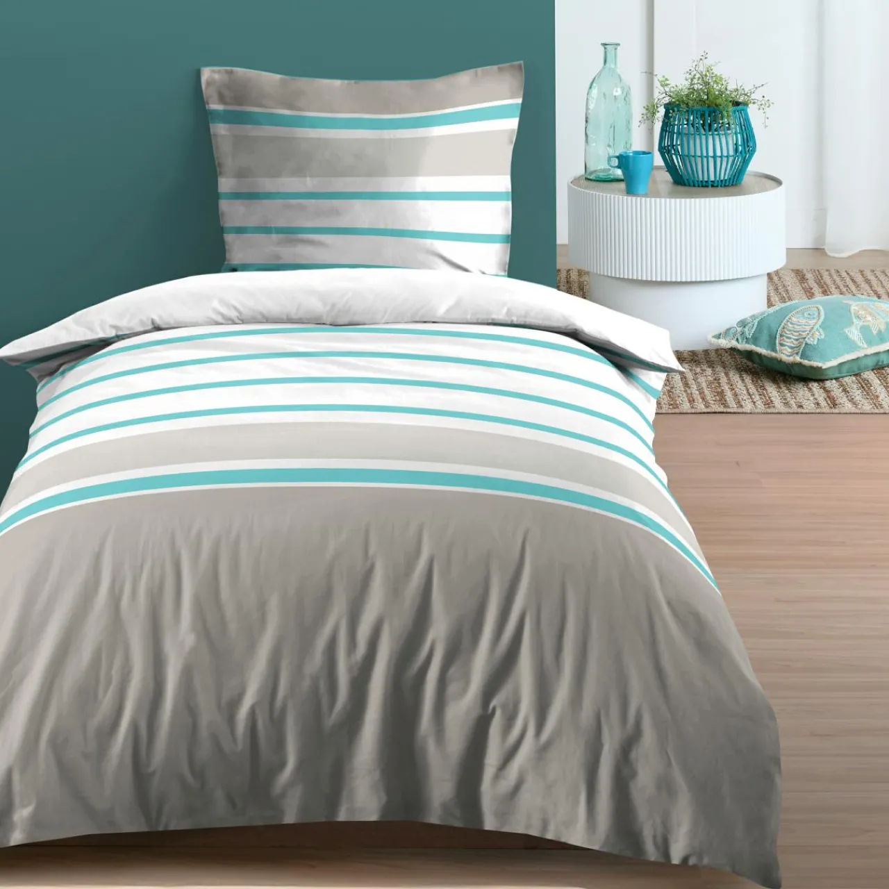 Parure De Lit|STOF Housse de couette et une taie d’oreiller en coton (140 x 200 cm) Barbade Vert céladon