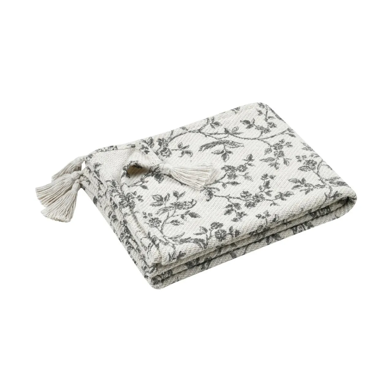 Imprimé : plaid à motif végétal au recto et uni au verso.