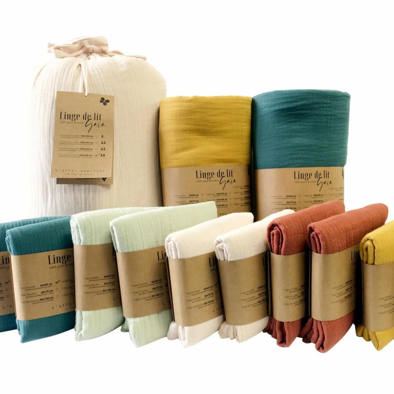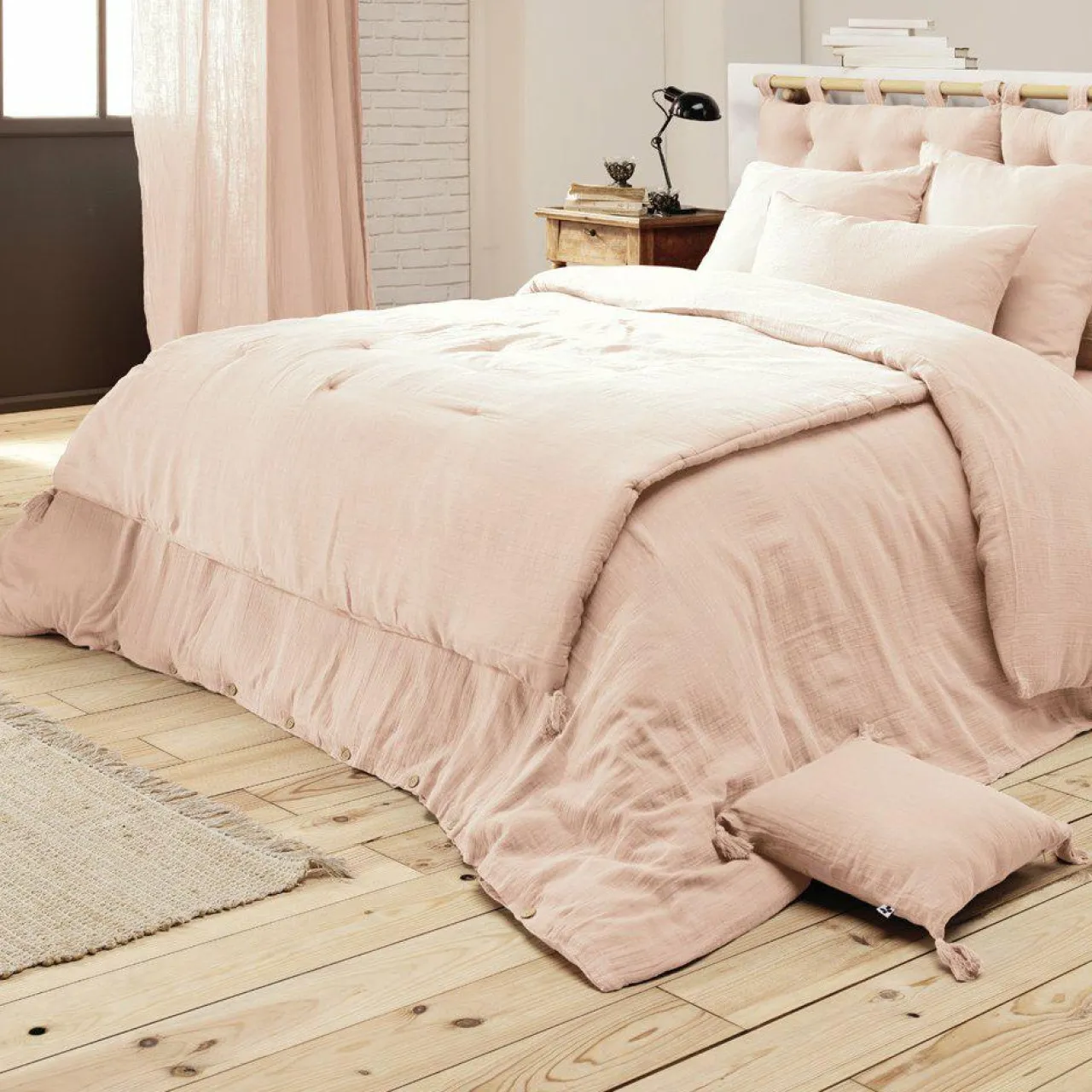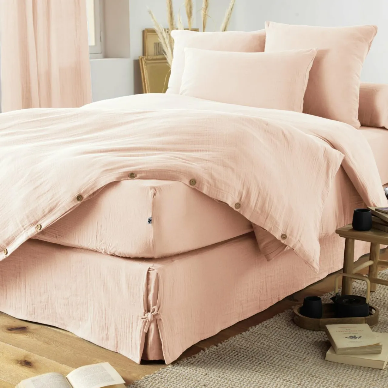 Protection De Literie|EMINZA Cache-sommier Gaze de coton (140 x 190 cm) Gaïa Rose poudré