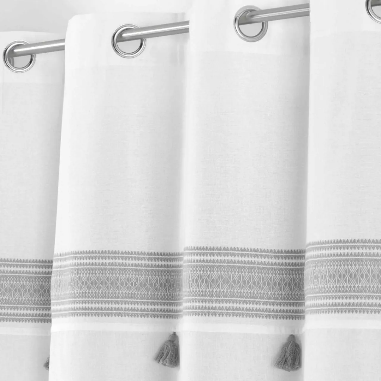 Ce rideau en coton possède une frise à motif ethnique et des pompons, il sera parfait pour habiller votre fenêtre.