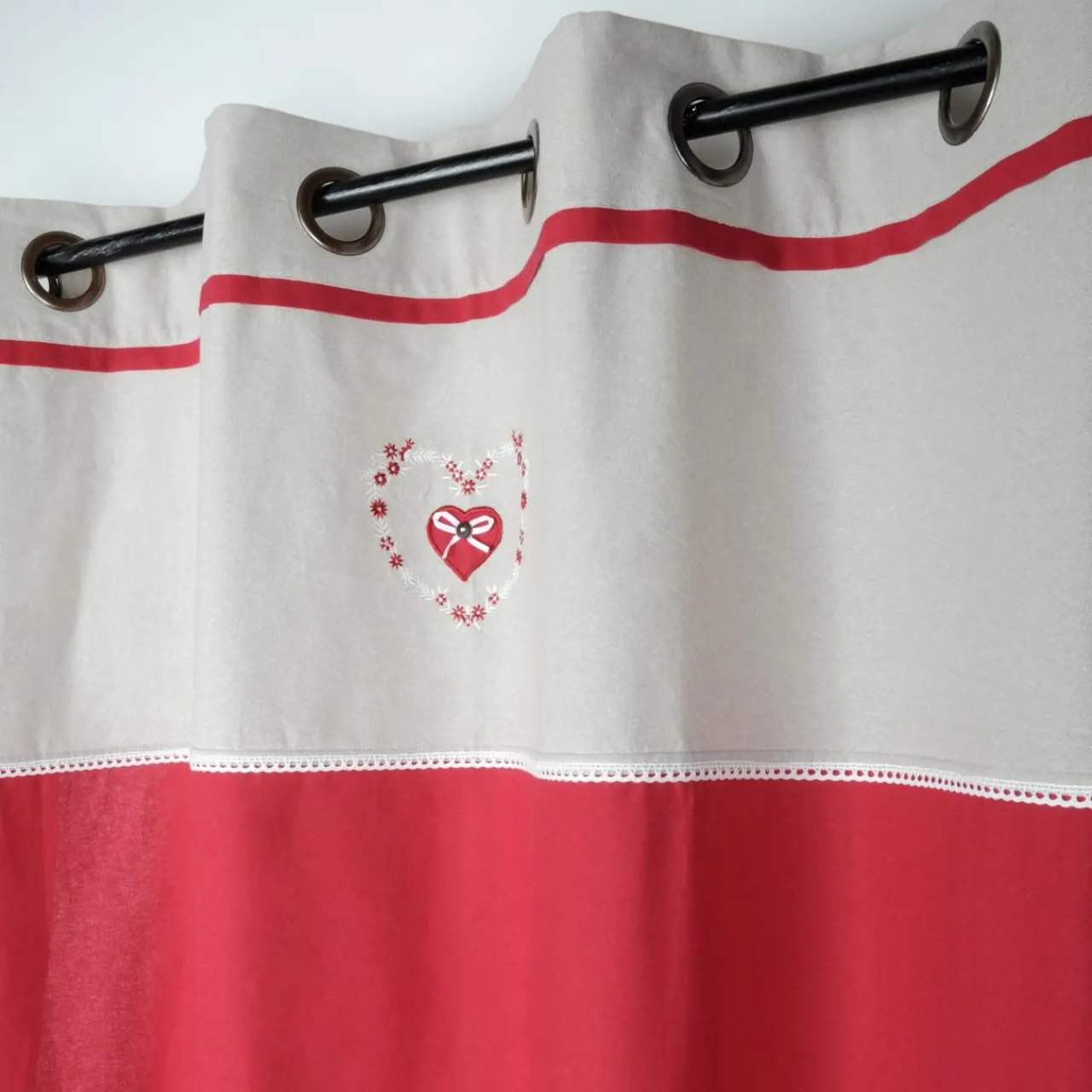 Imprimé : rideau à motif coeur esprit chalet de montagne.