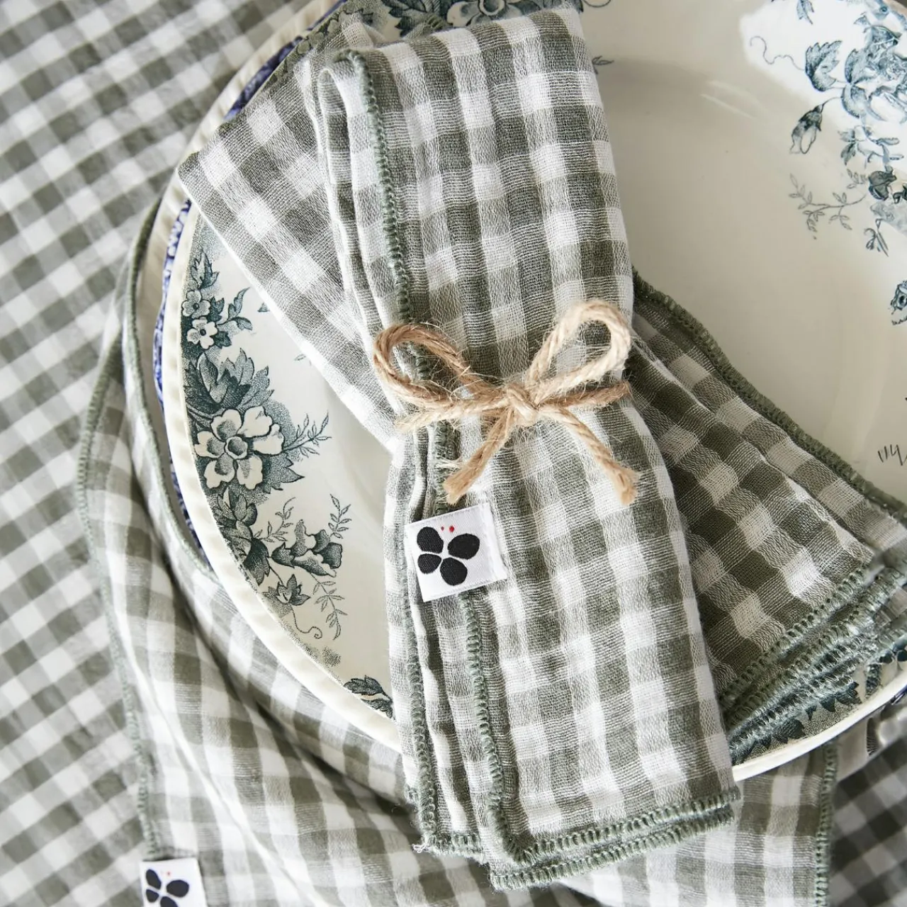 Ces serviettes en gaze de coton ajoutent une touche douce et naturelle autour de la table.