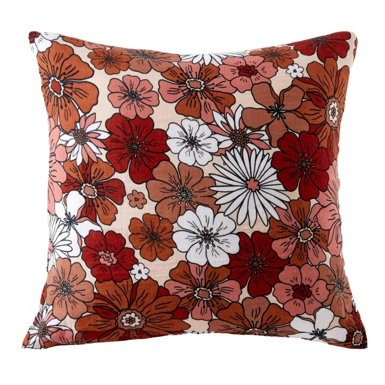 Taie D’Oreiller, Traversin|EMINZA Taie d’oreiller carrée gaze de coton (60 x 60 cm) Gaïa Azalée Terracotta
