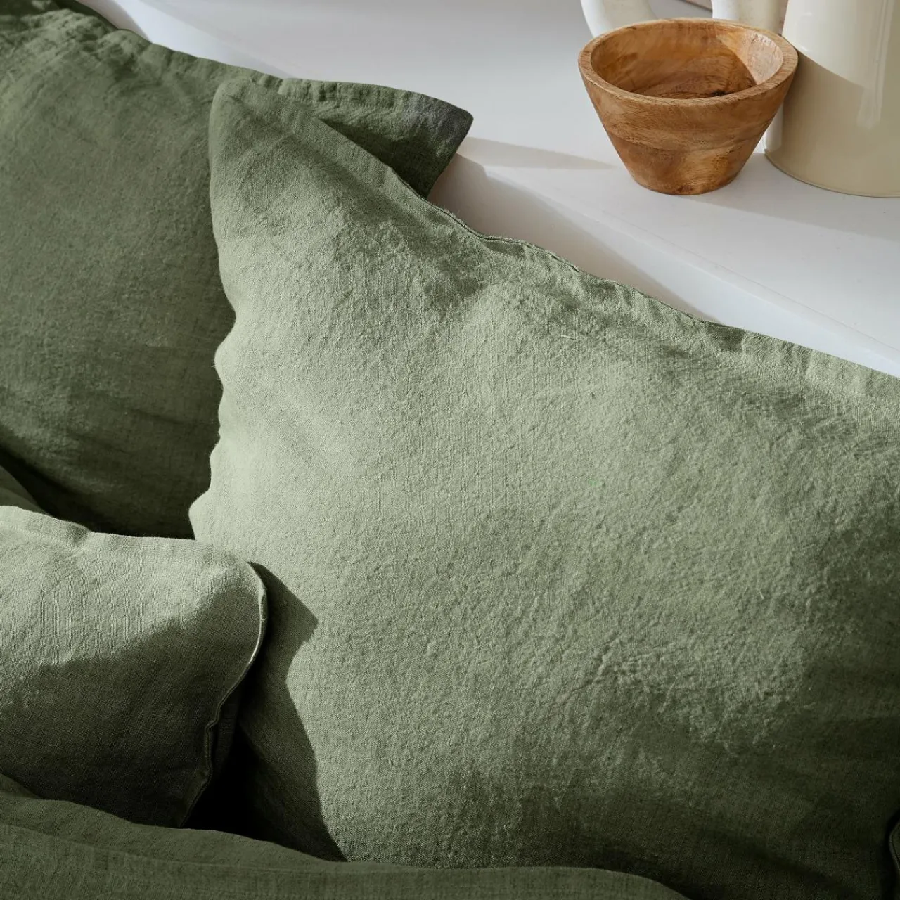 Taie D’Oreiller, Traversin|EMINZA Taie d’oreiller carrée lin lavé (80 x 80 cm) Louise Vert romarin