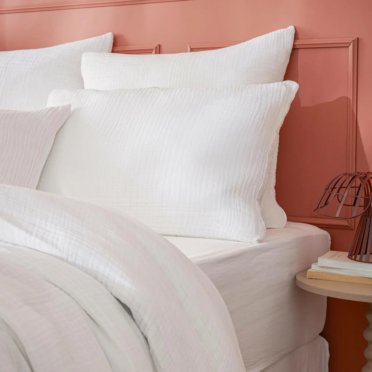 Naturellement gaufré, le linge en gaze de coton ne nécessite pas de repassage.