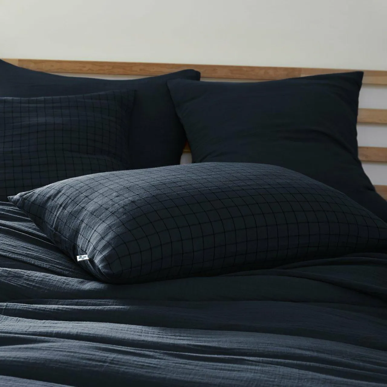 Taie D’Oreiller, Traversin|EMINZA Taie d’oreiller rectangulaire gaze de coton (50 x 70 cm) Gaïa Mix Bleu nuit