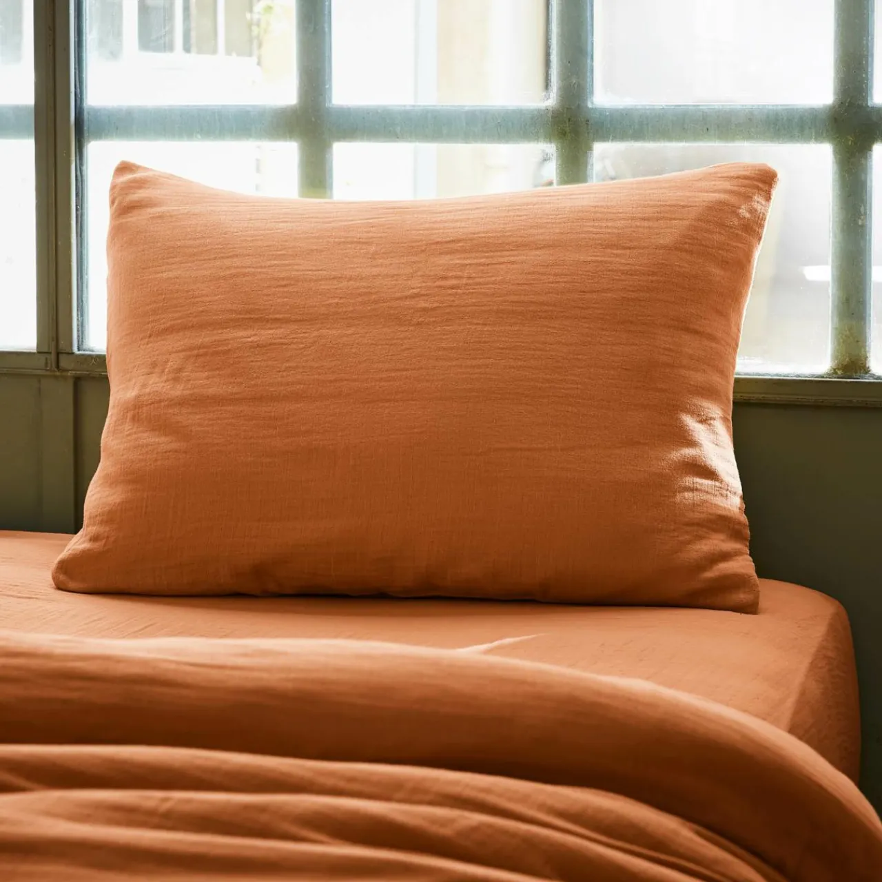 Taie D’Oreiller, Traversin|EMINZA Taie d’oreiller rectangulaire gaze de coton (50 x 80 cm) Gaïa Abricot