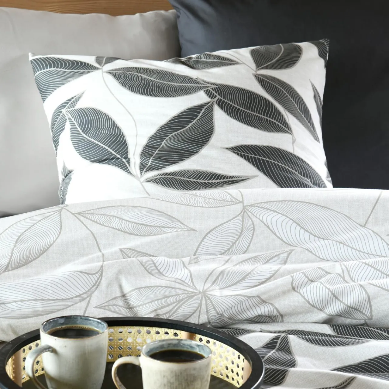 Imprimé : taie à motif végétal.