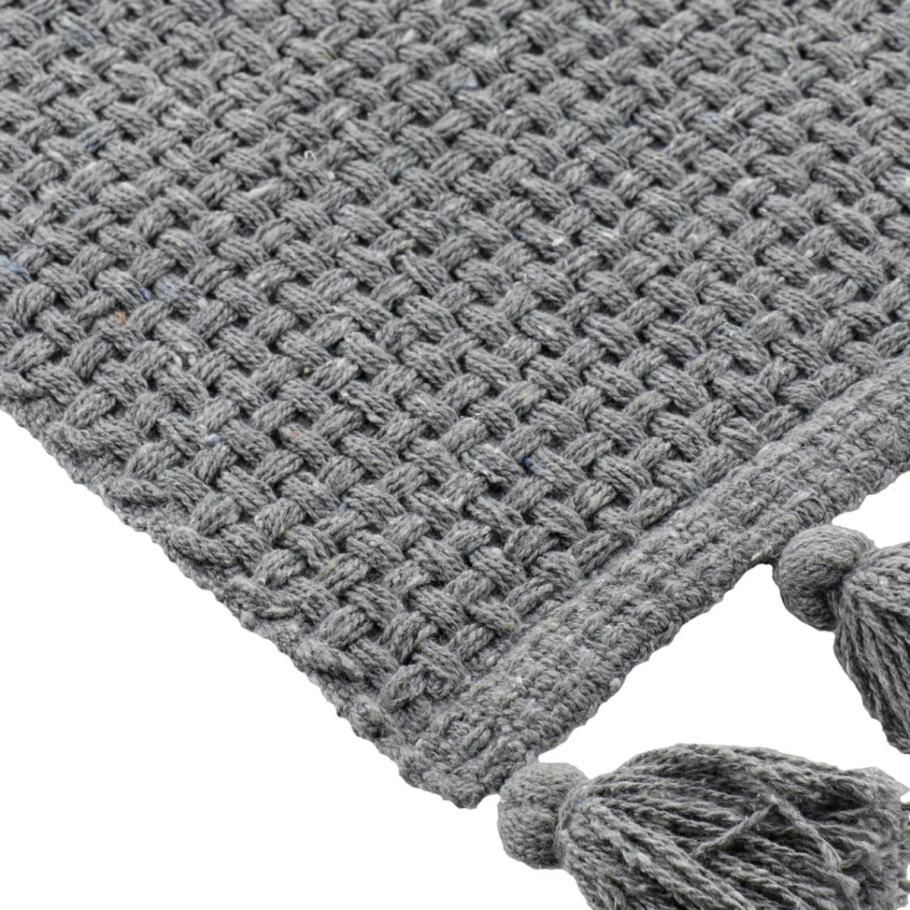 Finition : tapis à pompons.