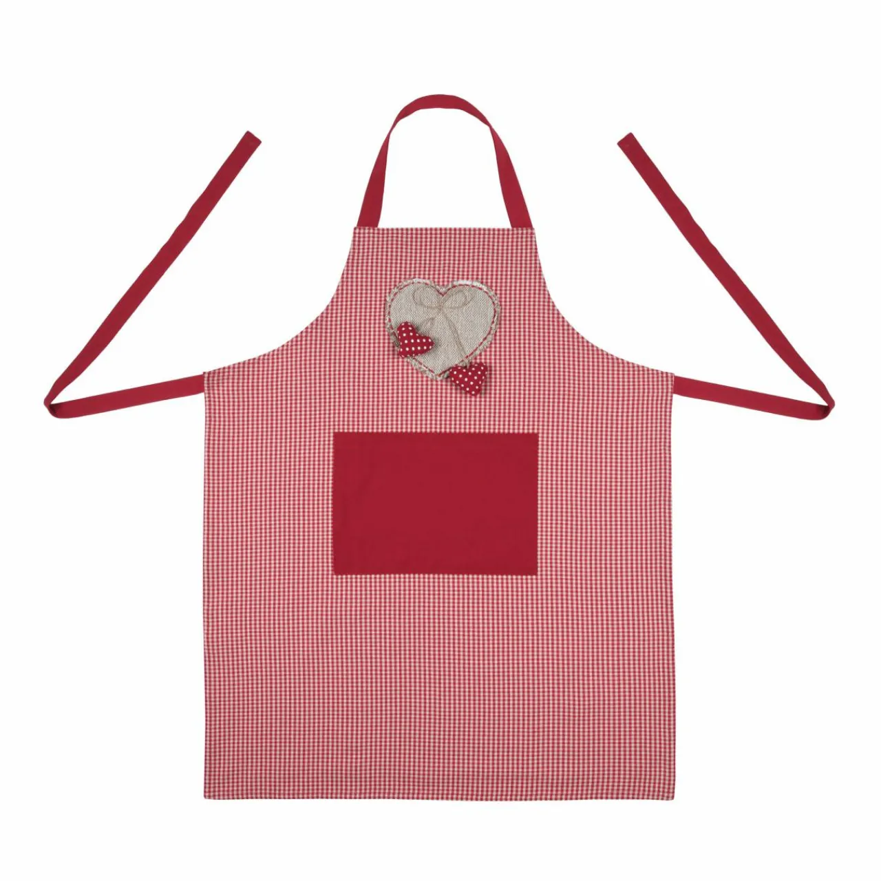 Imprimé : tablier à motif coeur et à carreaux.