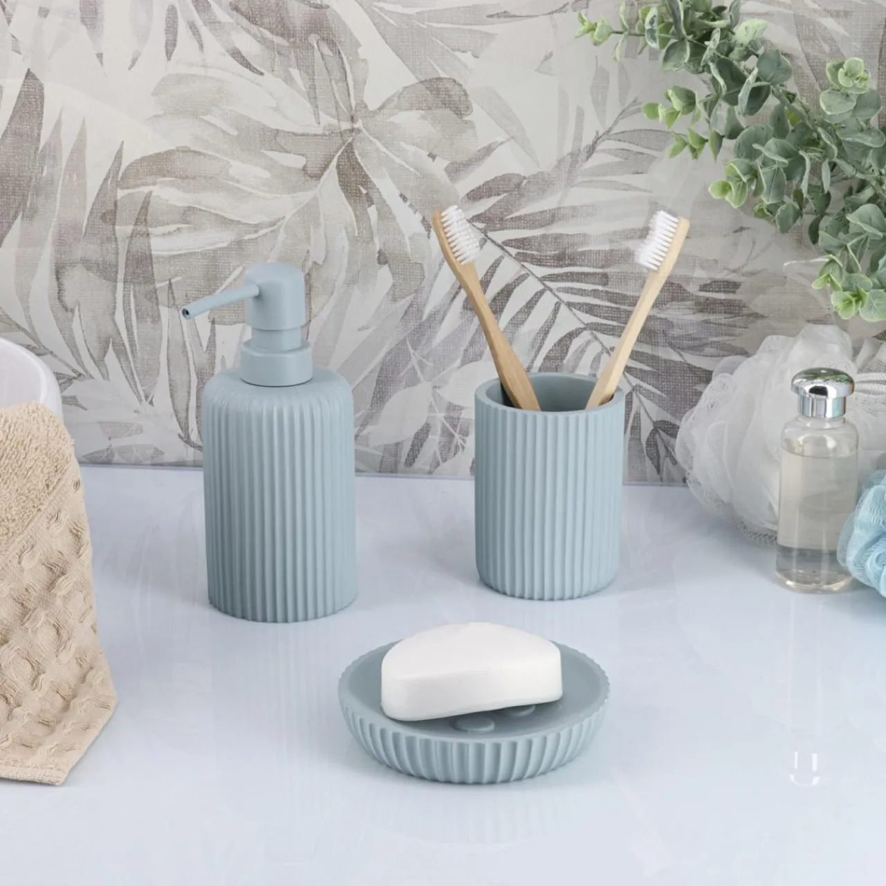 Accessoire Salle De Bain|TENDANCE Set d’accessoires salle de bain Purebamboo Bleu clair